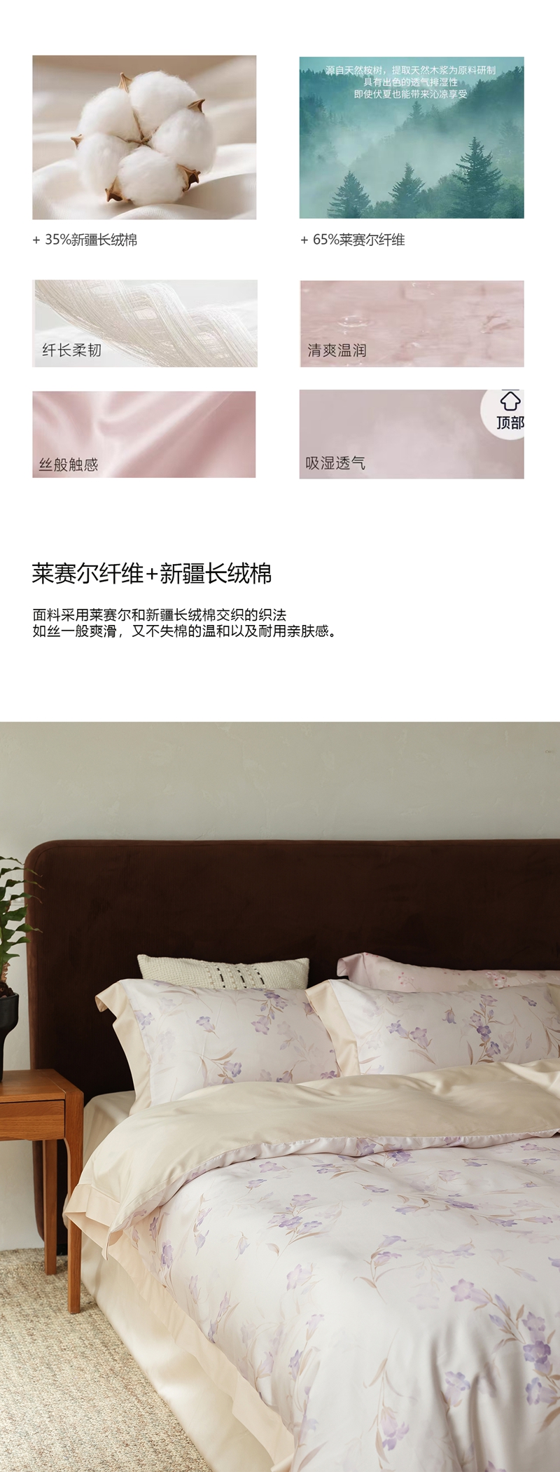 被面材质: 莱赛尔纤维+棉(混纺)