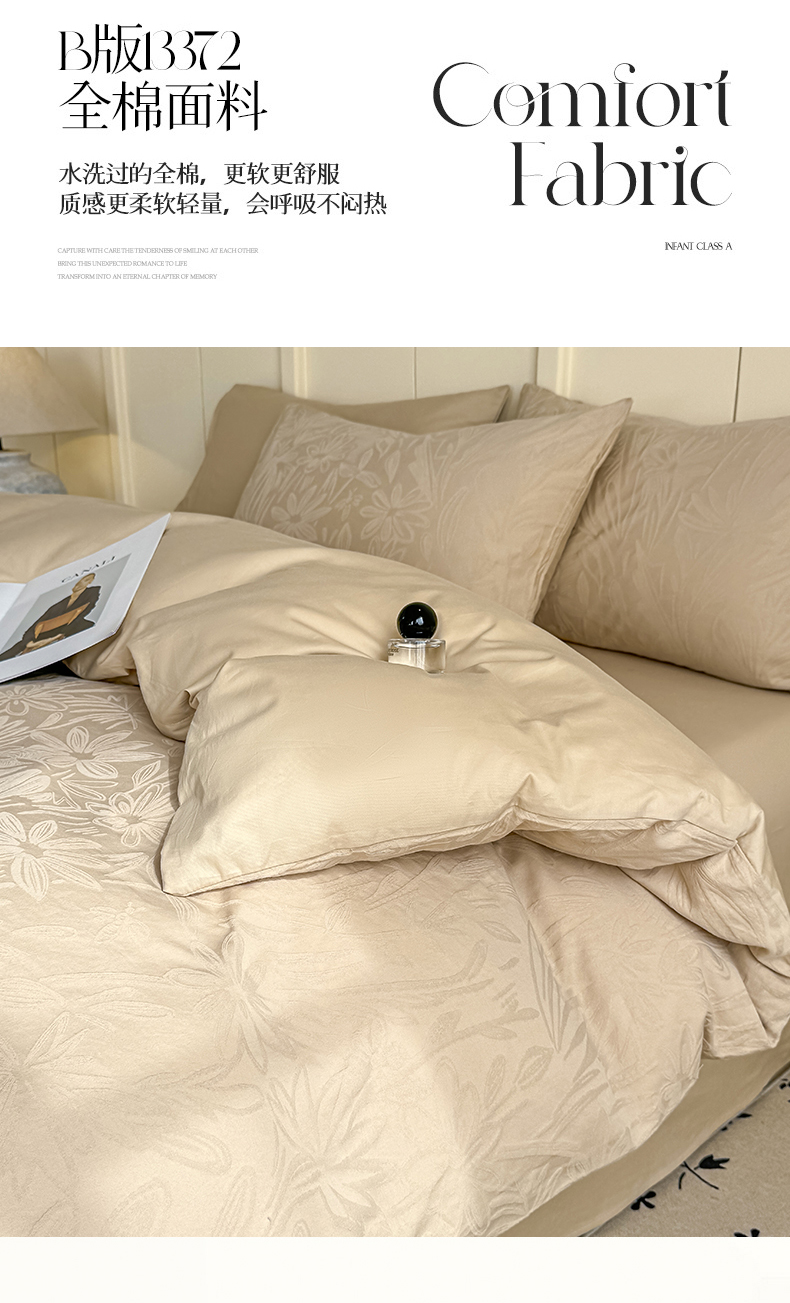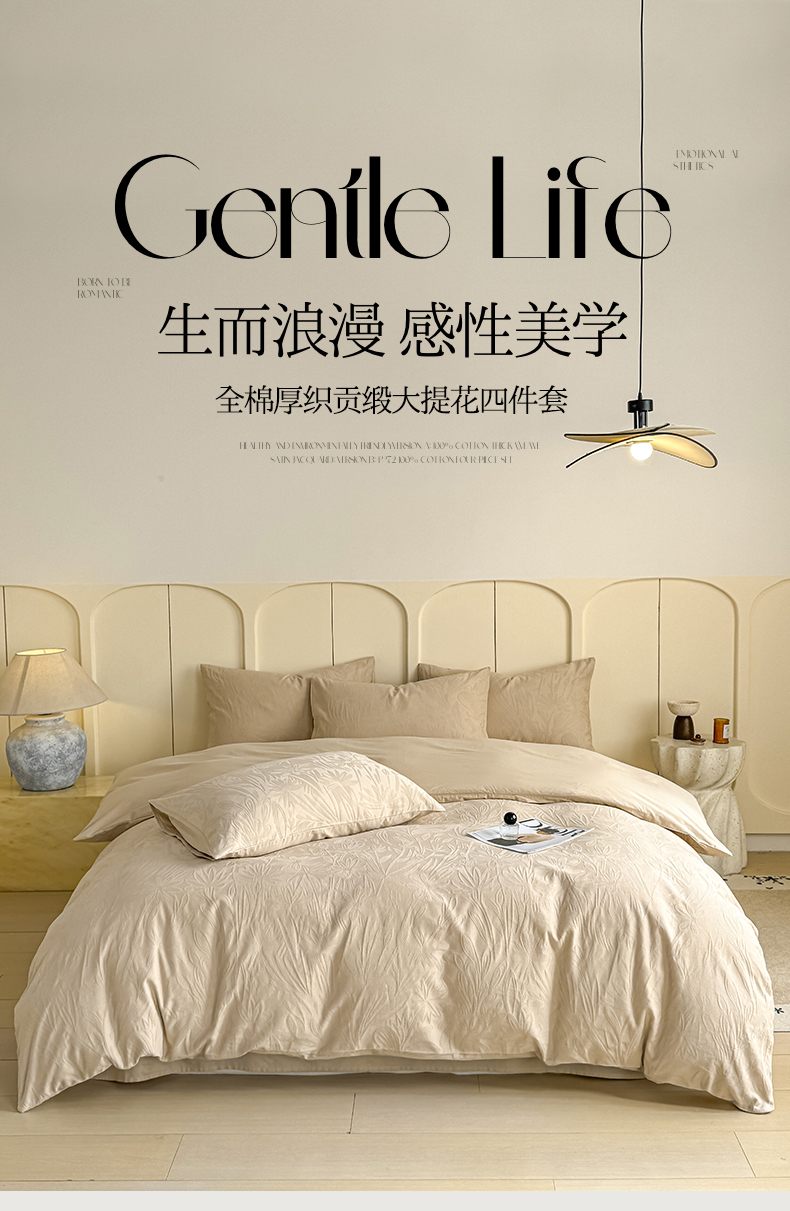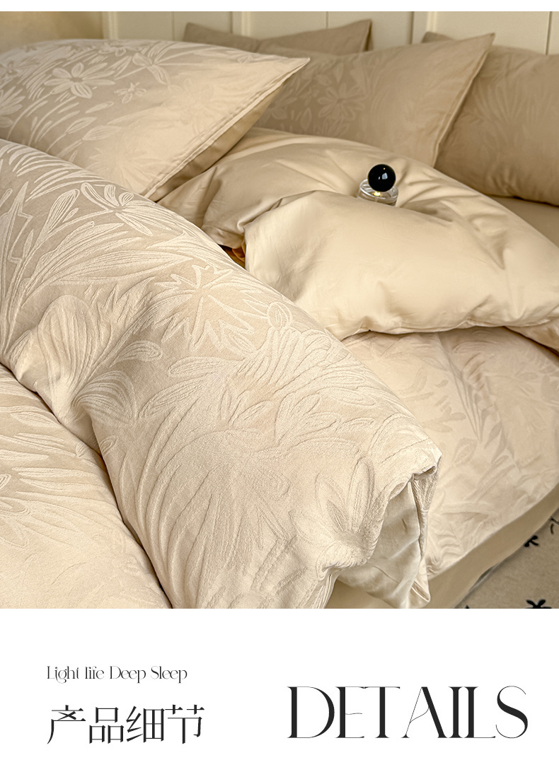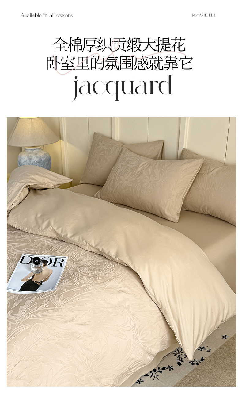 当前位置: 91家纺网 > 商品网购 > 床品套件 > 四件套 > 全棉普通四件套 > 灰鲸 2026新款全棉纯棉厚织贡缎大提花四件套 花汀-可可杏