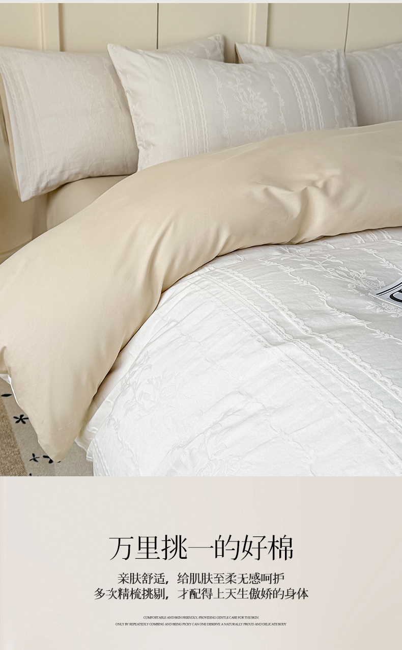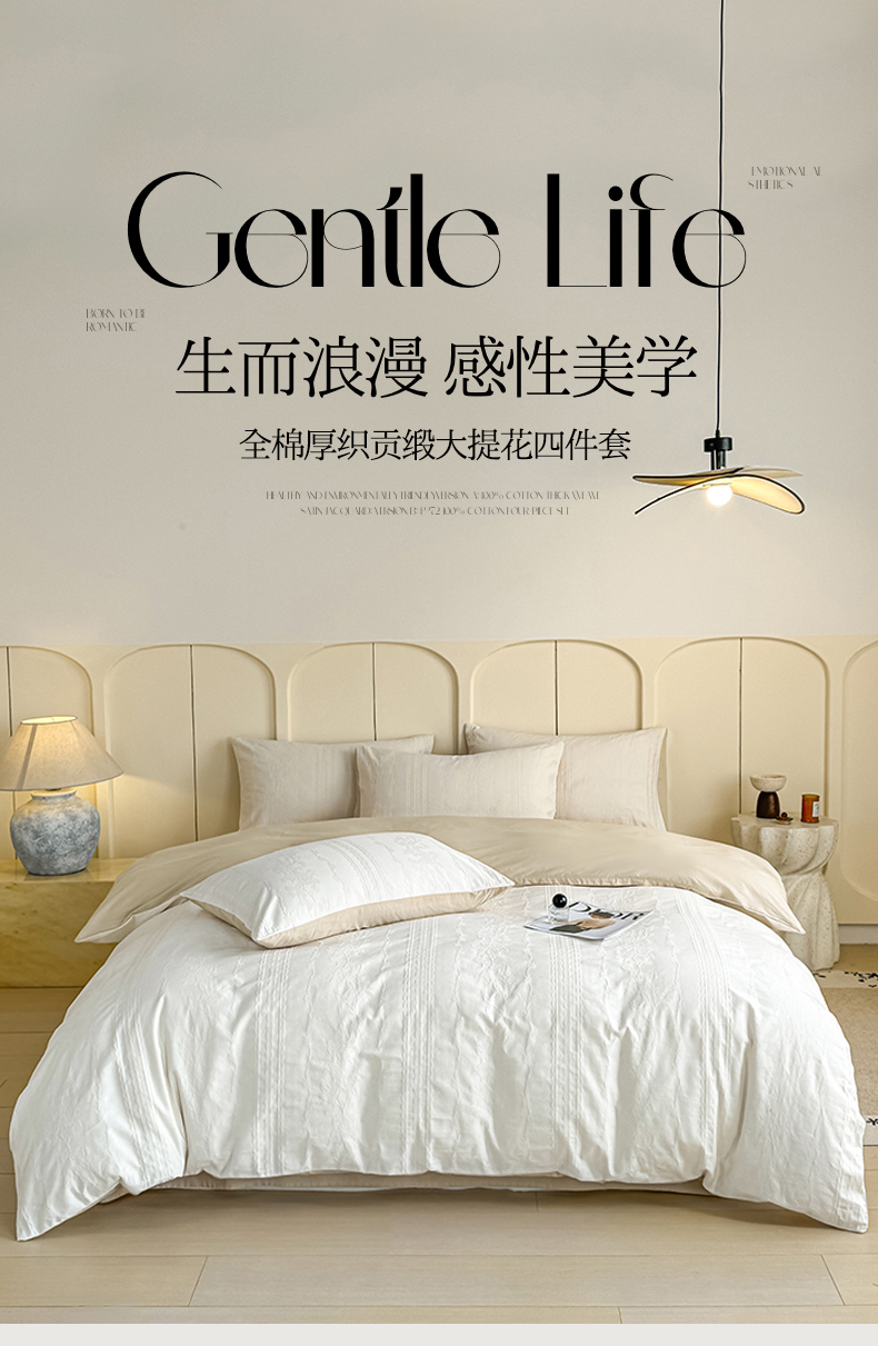 当前位置: 91家纺网 > 商品网购 > 床品套件 > 四件套 > 全棉普通四件套 > 灰鲸 2026新款全棉纯棉厚织贡缎大提花四件套 浅春-杏仁奶霜