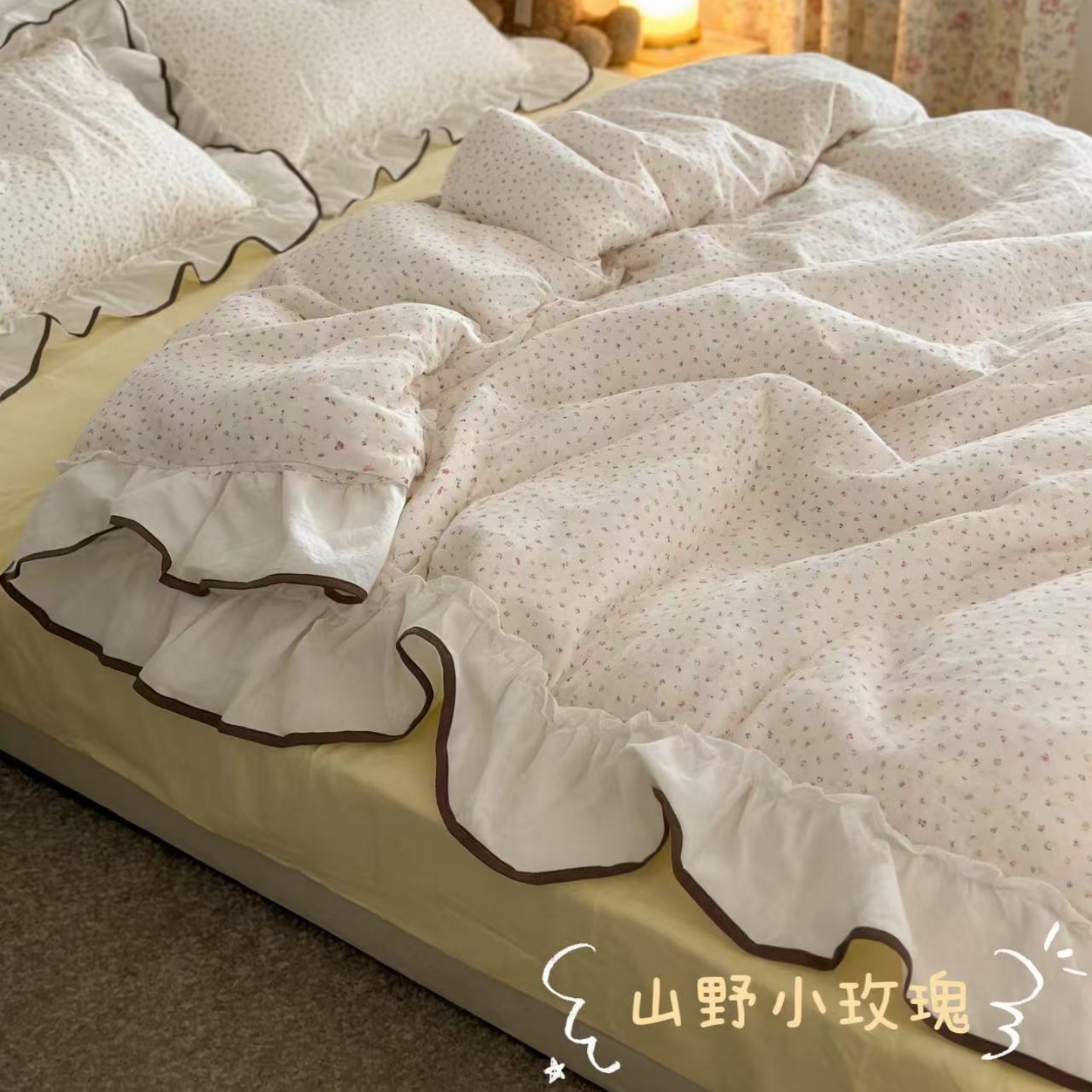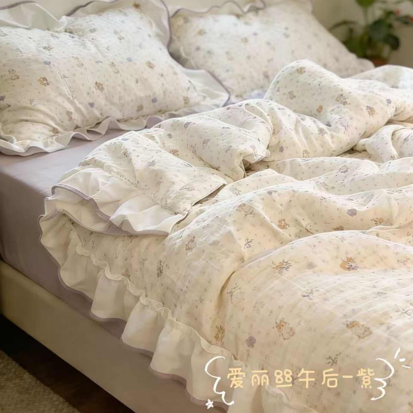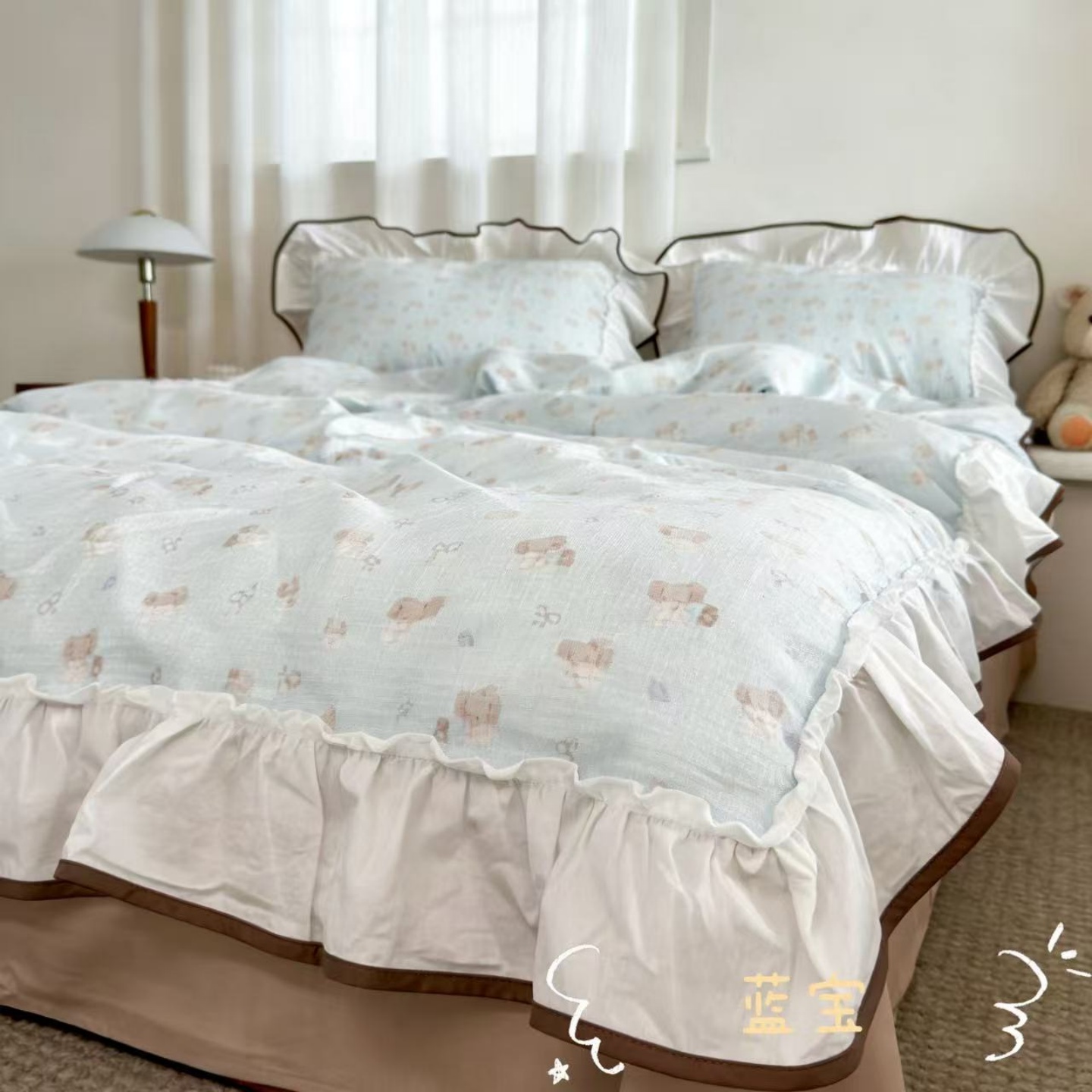 当前位置: 91家纺网 > 商品网购 > 床品套件 > 四件套 > 全棉普通四件套 > 荣轩家居 2026春夏新款韩式重工泡芙花边工艺款全棉纯棉双层纱四件套(铺床版) 樱桃奶芙