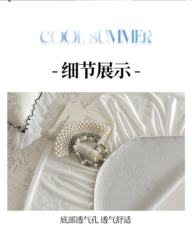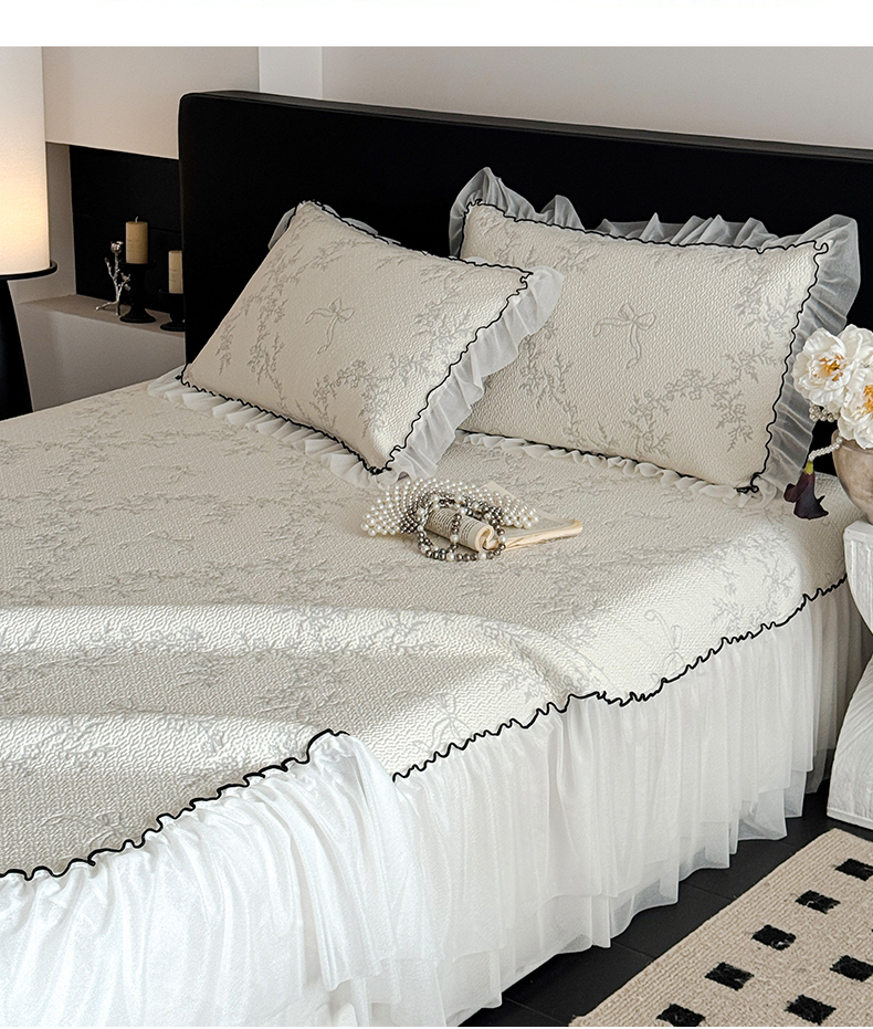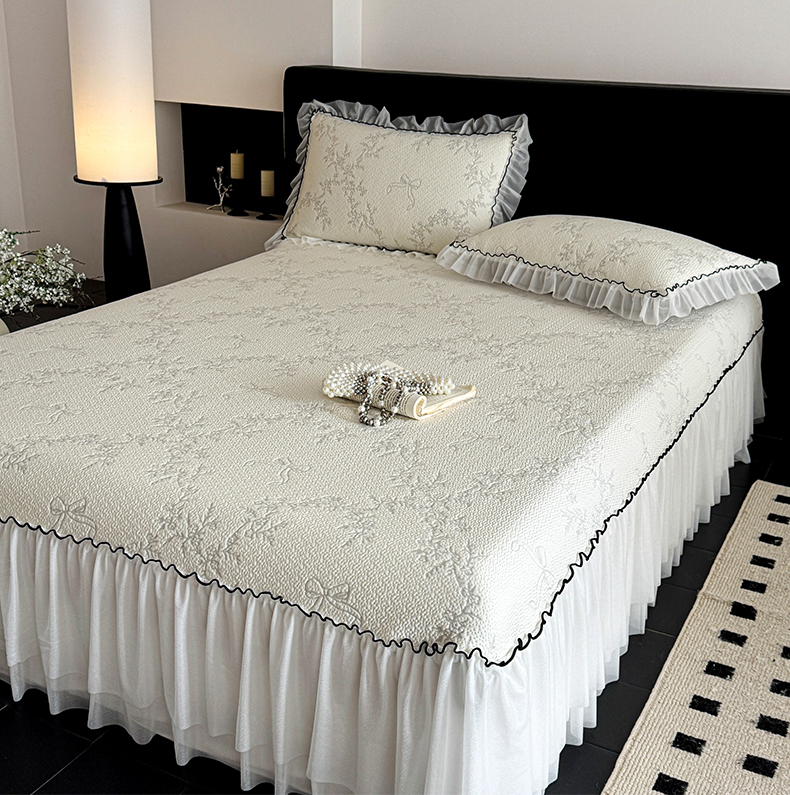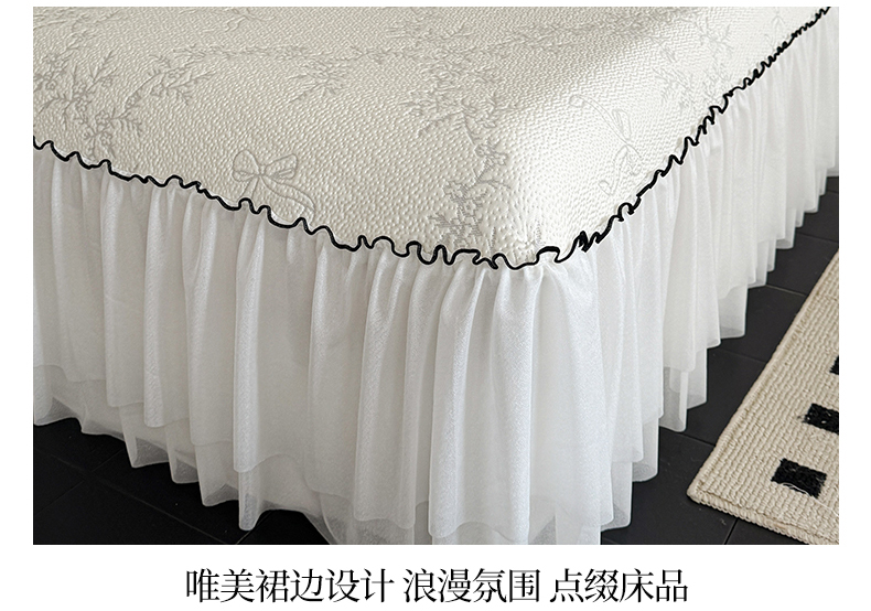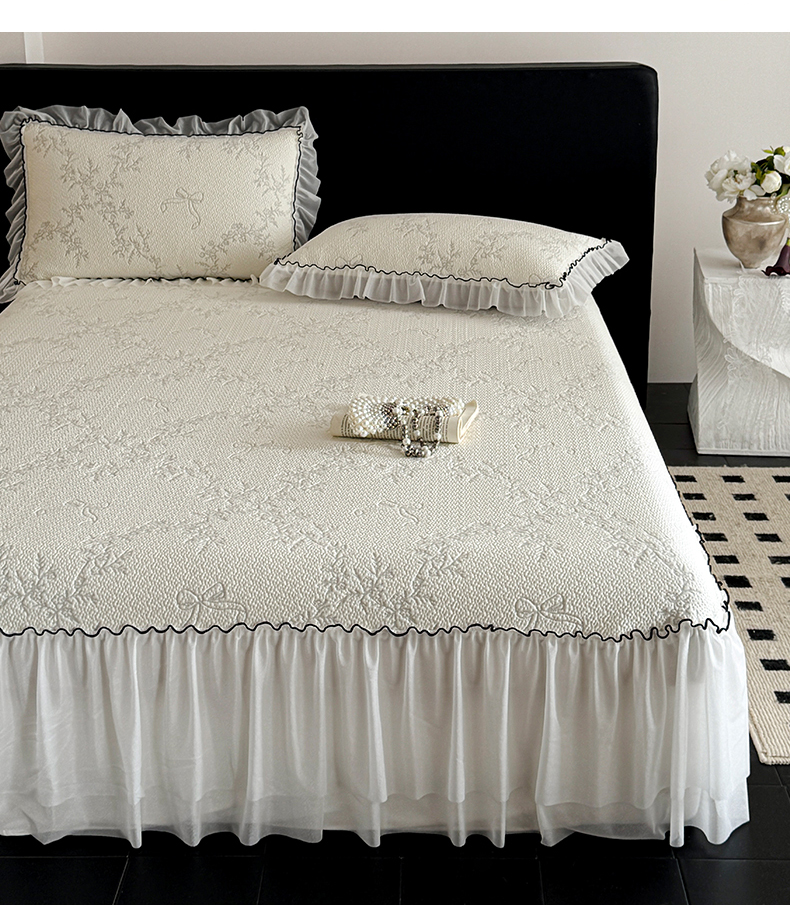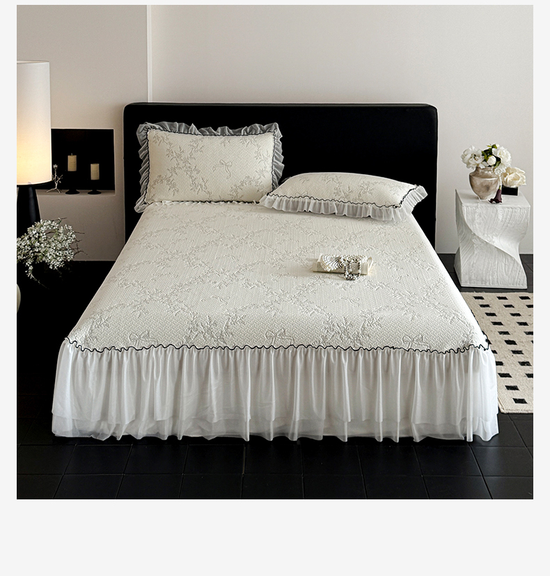 床上用品 > 凉席 > (总)羚羊语家纺 2026新款韩式PE提花凉泡泡席床裙款中分子【凉感值>2.0】花边乙纶冰豆豆夏季凉感冰丝软席三件套