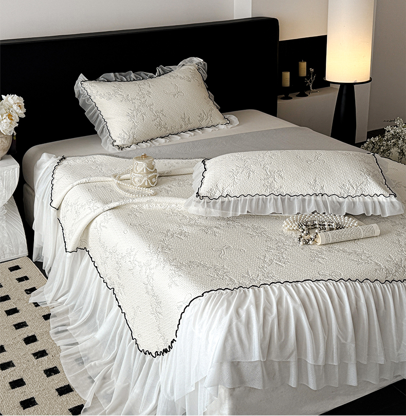 商品名称:(总)羚羊语家纺 2026新款韩式PE提花凉泡泡席床裙款中分子【凉感值>2.0】花边乙纶冰豆豆夏季凉感冰丝软席三件套