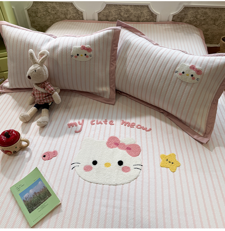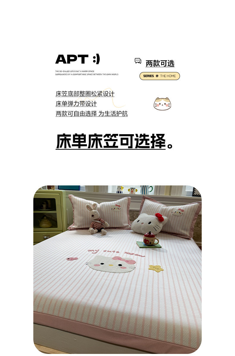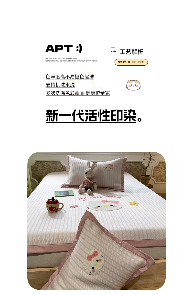 (总)雅居纺家纺 2026新款PE凉感卡通床裙床盖凉席韩版花边加厚三明治底PE凉感席,粉色猫咪家族,粉色星星腊肠狗,萌萌苹安果,汪星人,夏日苹果狗,幸运酷熊