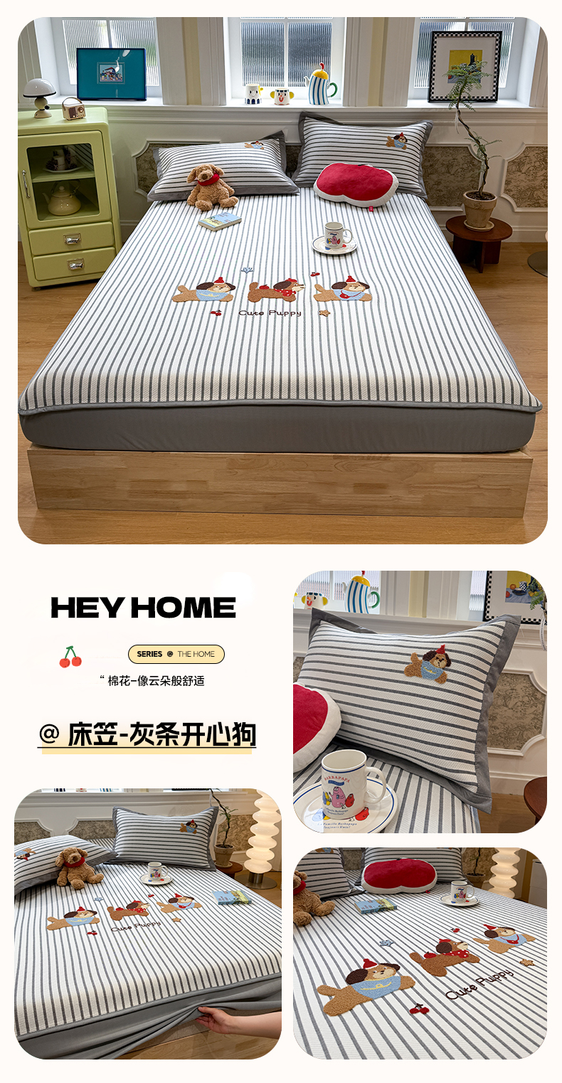 雅居纺家纺 2026春夏新款PE凉感提花绣花凉席席子 床笠款-狗狗家族