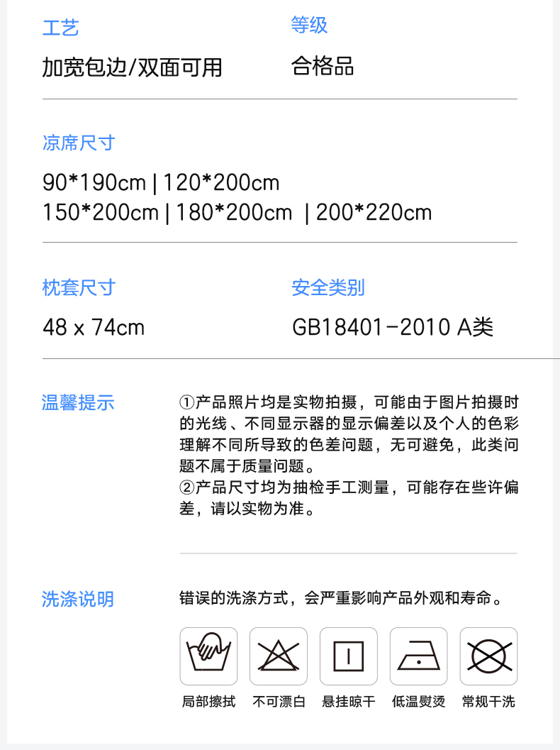 200x220cm单凉席+枕套一对 | ¥68.00 |