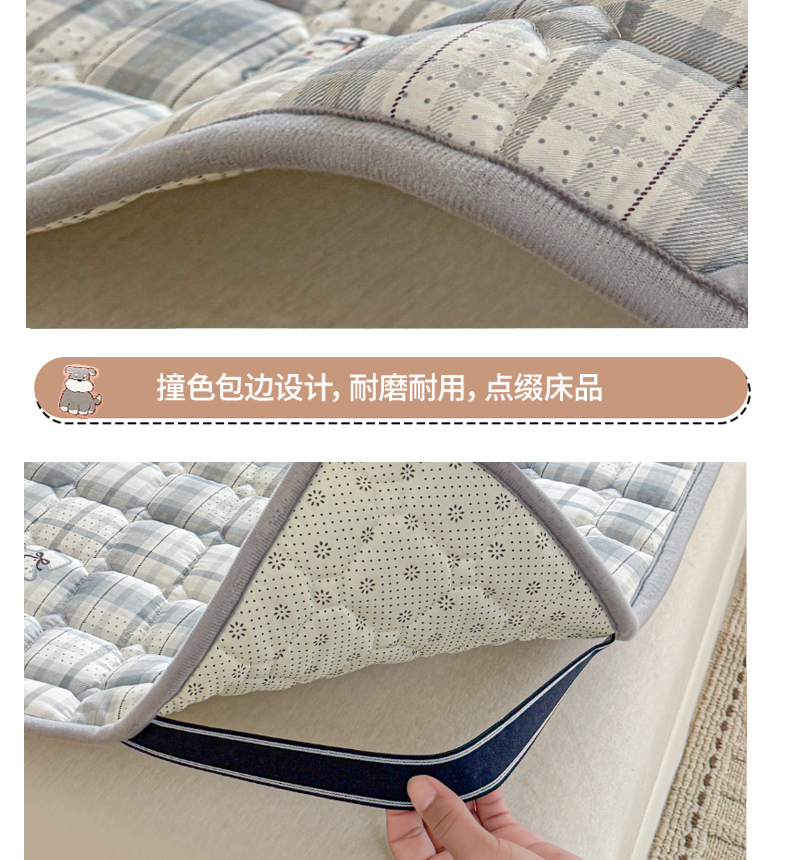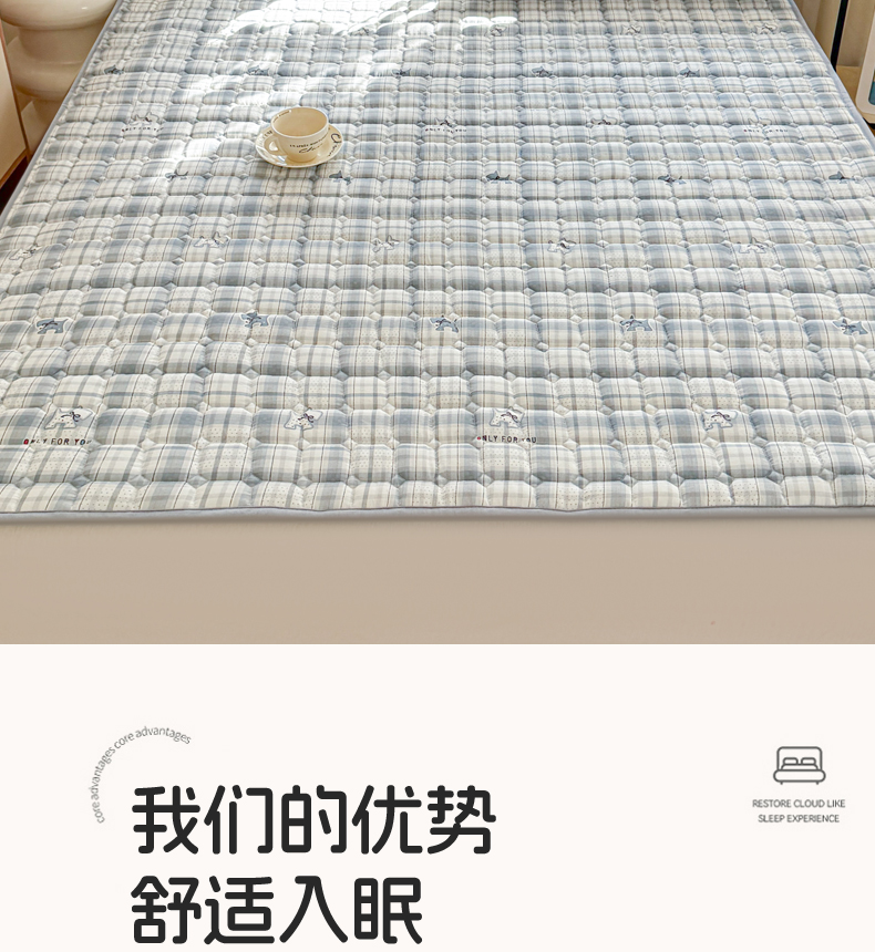 (总)丽诺床垫 2024新款升级款全棉13372抗菌防滑床护垫,灰色,玉色 ,卡其色 ,秋蓝,白色
