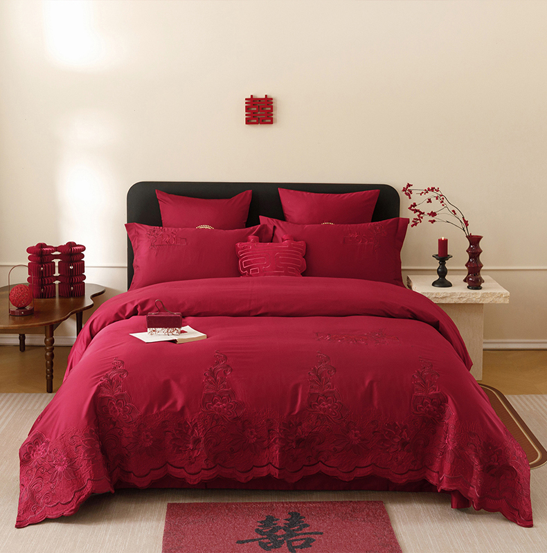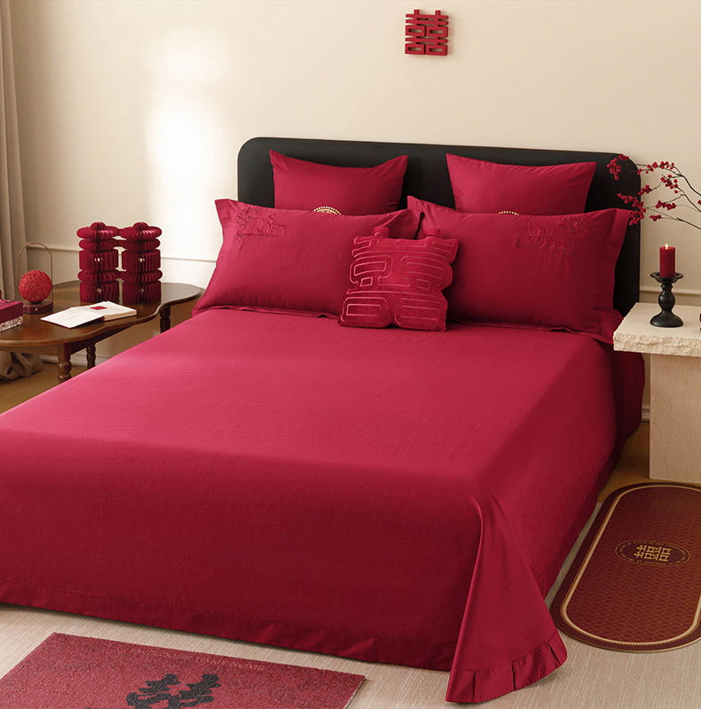 当前位置: 91家纺网 > 商品网购 > 床品套件 > 四件套 > 长绒棉四件套 > 甜咪咪婚庆 2026新款婚庆公主风小红书爆款50s双股100支长绒棉全棉四件套多件套床单床盖 罗曼蒂克 红