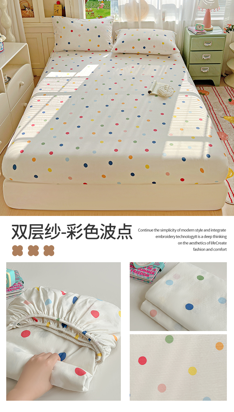 • 91家纺网 家纺一手货源 找家纺 (总)名兮家居 2026新款全棉纯棉A类卡通时尚风双层纱床笠单品床笠床笠单件,双层纱-彩色波点,双层纱-彩条樱桃,双层纱-狗狗幻想,双层纱-花田鸭,双层纱-兰花小兔,双层纱-蘑菇屋,双层纱-木马集,双层纱-奶黄星仔,双层纱-晴天兔,双层纱-趣味王国,双层纱-碎星蝶舞,双层纱-童梦缘,双层纱-小狗日记,双层纱-星星凯特,双层纱-猪猪乐园,双层纱-竹林派对