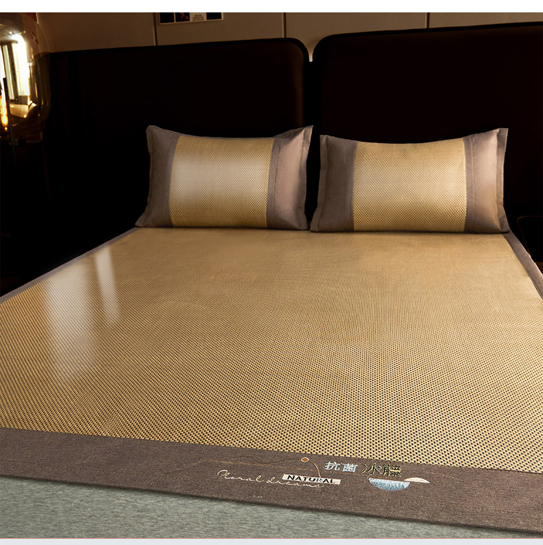 商品名称:梵克保罗 2026春夏新款3D复合冰藤凉席三件套 冰藤-心心相印-灰