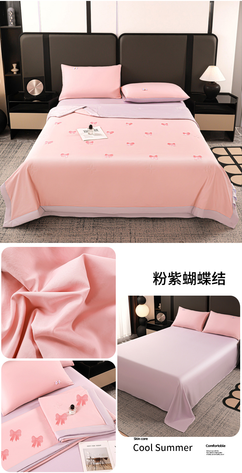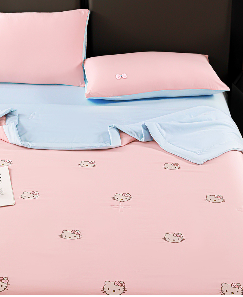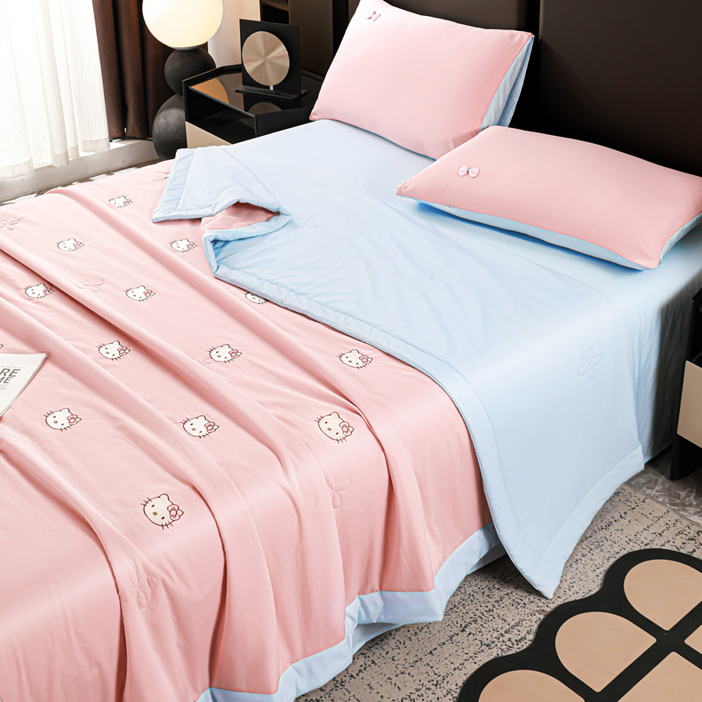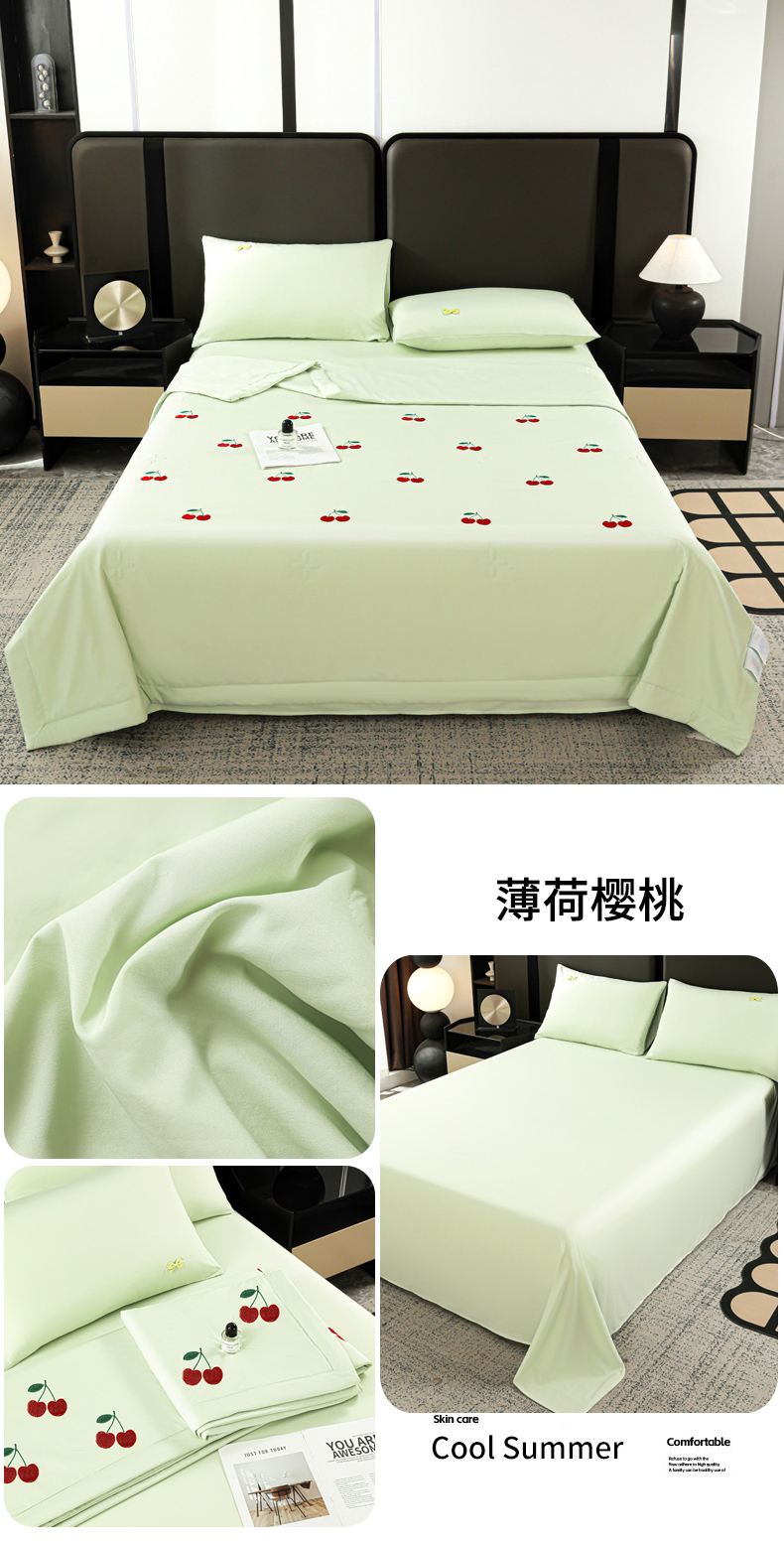 (总)佳鸿家纺 2026新款A类凉感冰柔丝刺绣手包边夏凉被夏被四件套 提供质检报告,薄荷樱桃,冰蓝kt,粉蓝kt,粉紫蝴蝶结,灰紫蝴蝶结,咖+灰小熊,奶咖小熊
