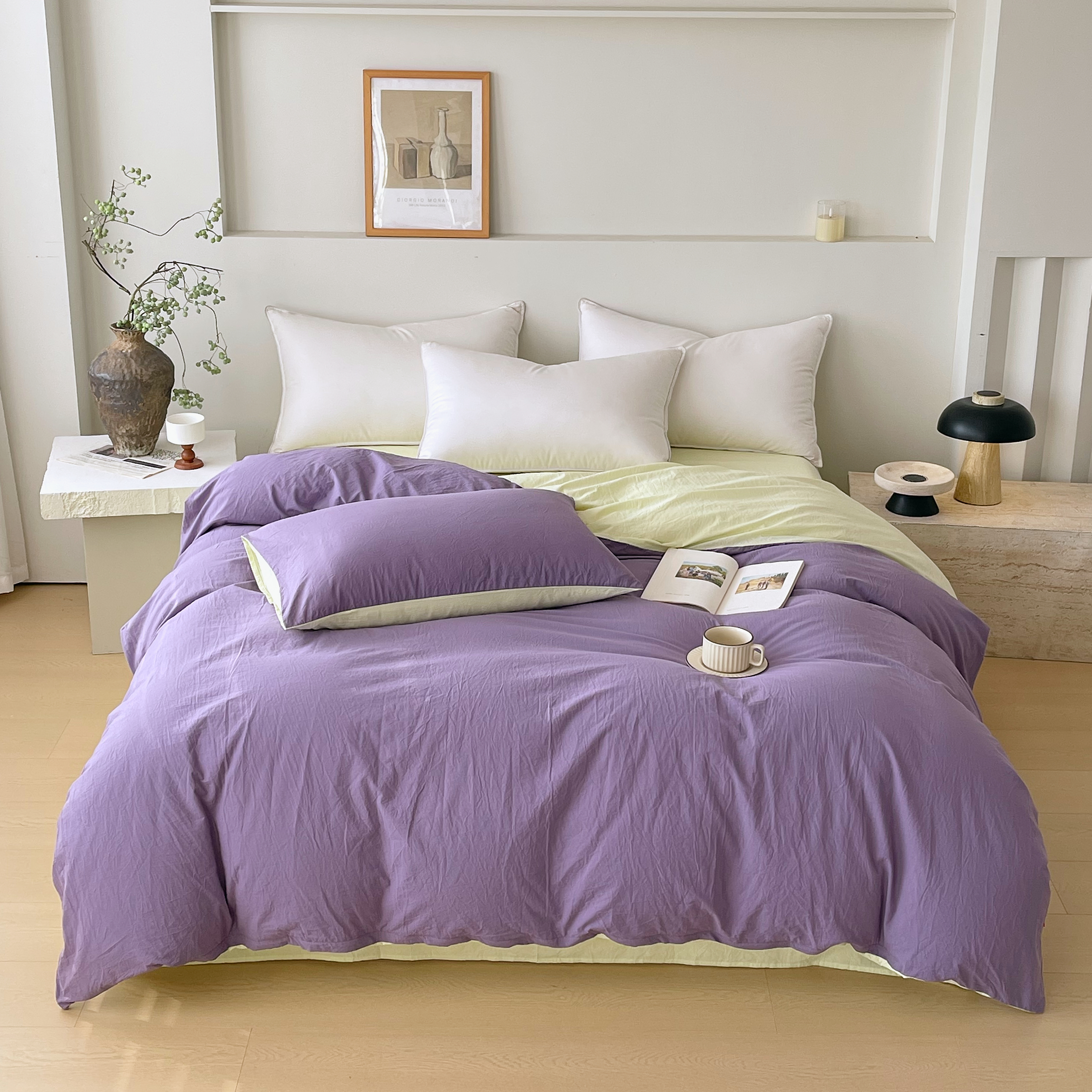 春皖家纺 2026春夏新款双拼全棉水洗棉单被套被套单件单品被套 浅蓝-樱花粉