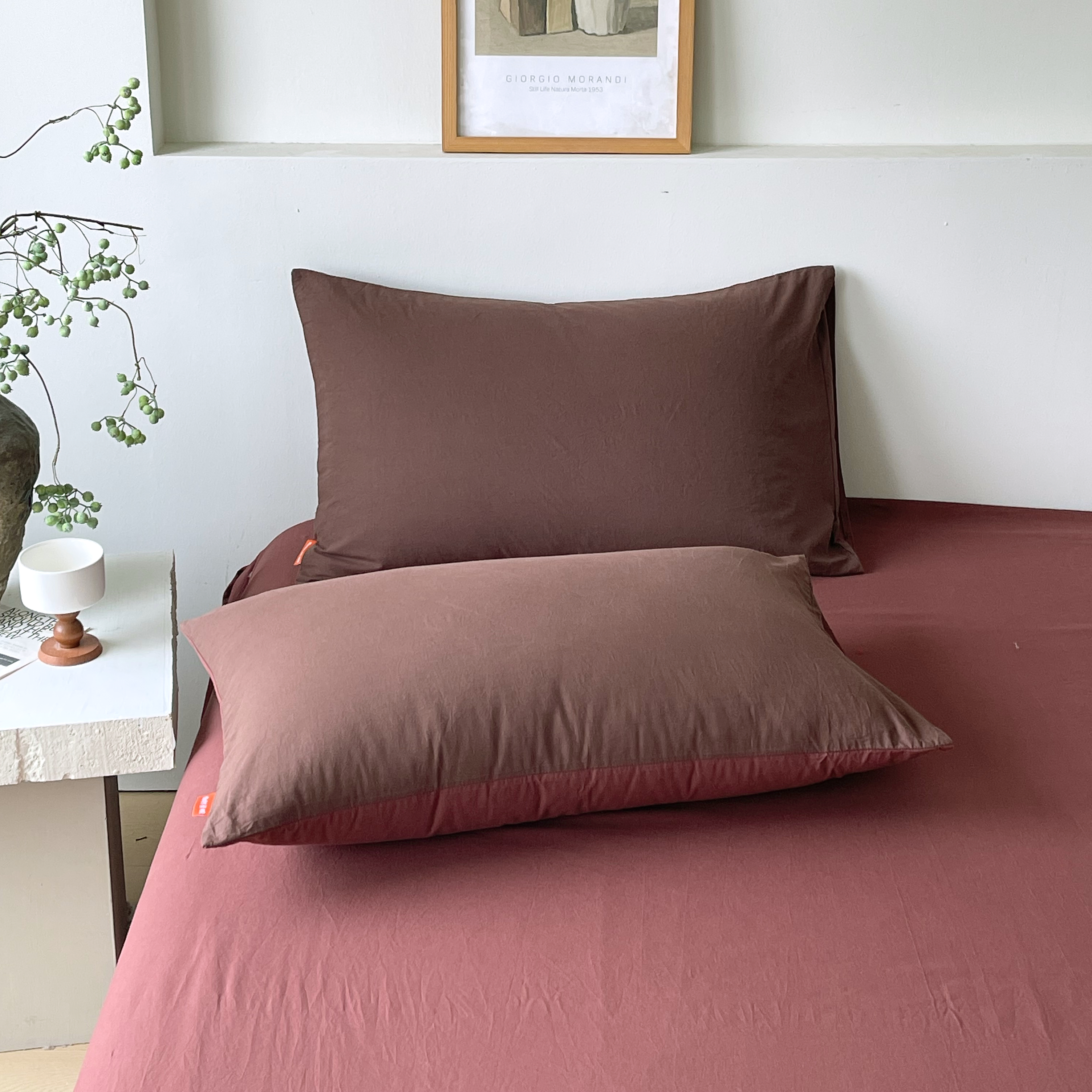 春皖家纺 2026春夏新款双拼全棉水洗棉单枕套枕套单件单品枕套 慕斯棕-卡其