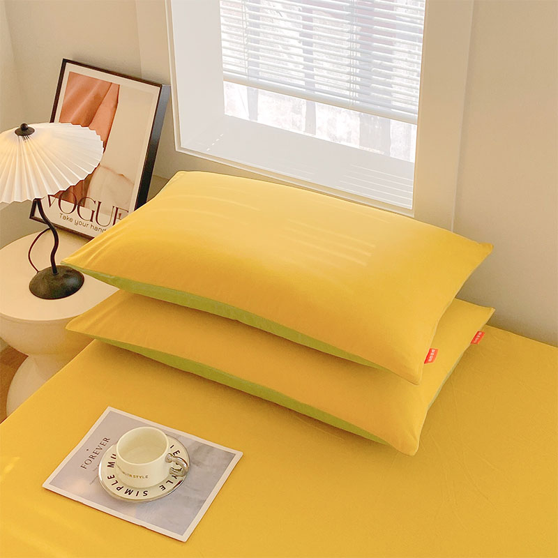 春皖家纺 2026春夏新款双拼全棉水洗棉单枕套枕套单件单品枕套 深黄-果绿