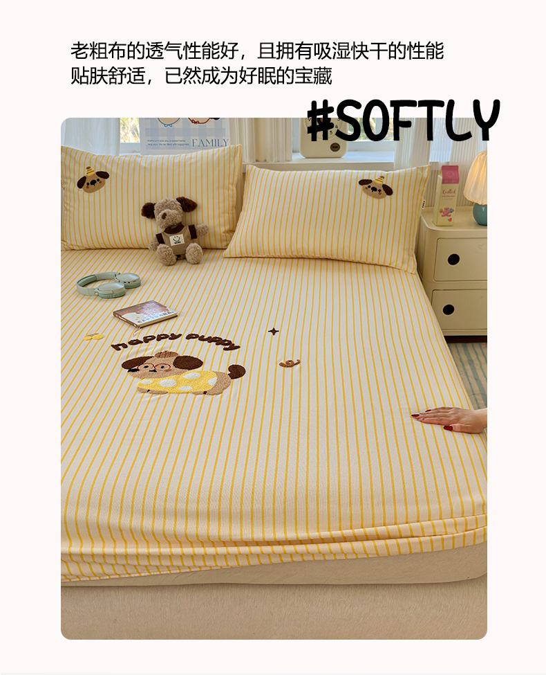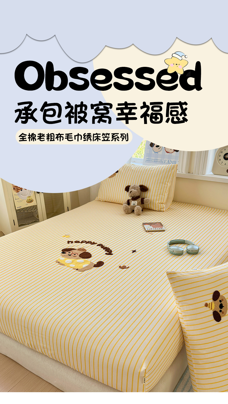 (总)沐棉家居 2026新款毛巾绣老粗布全棉纯棉床笠单品床笠单件