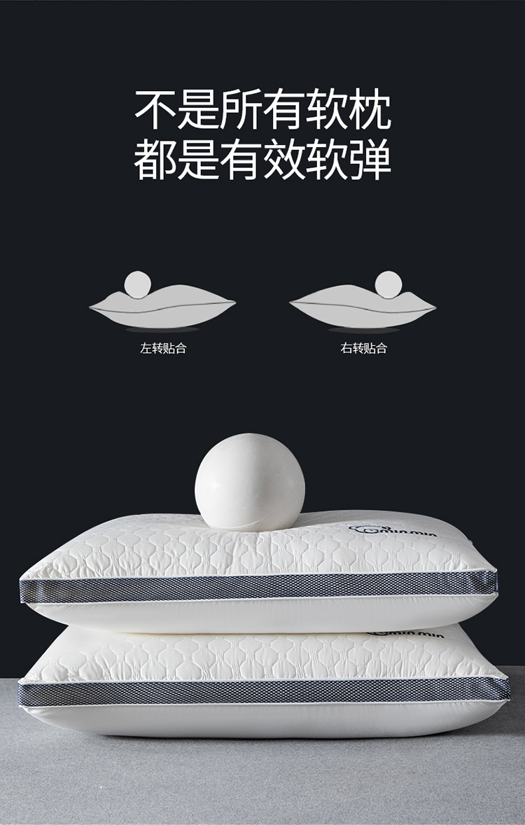 (总)永乐枕芯 2025新款三格线亲肤羽丝棉酒店枕枕头枕芯,藏蓝,灰色,雅白