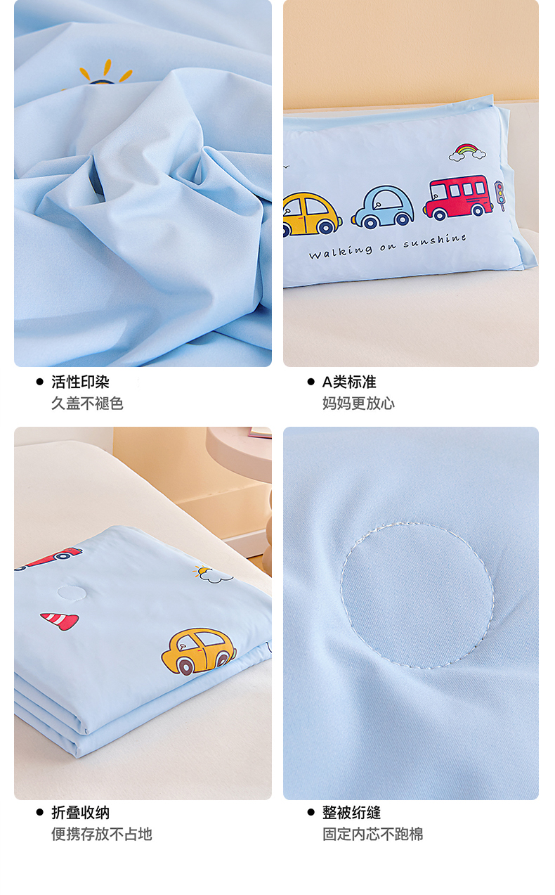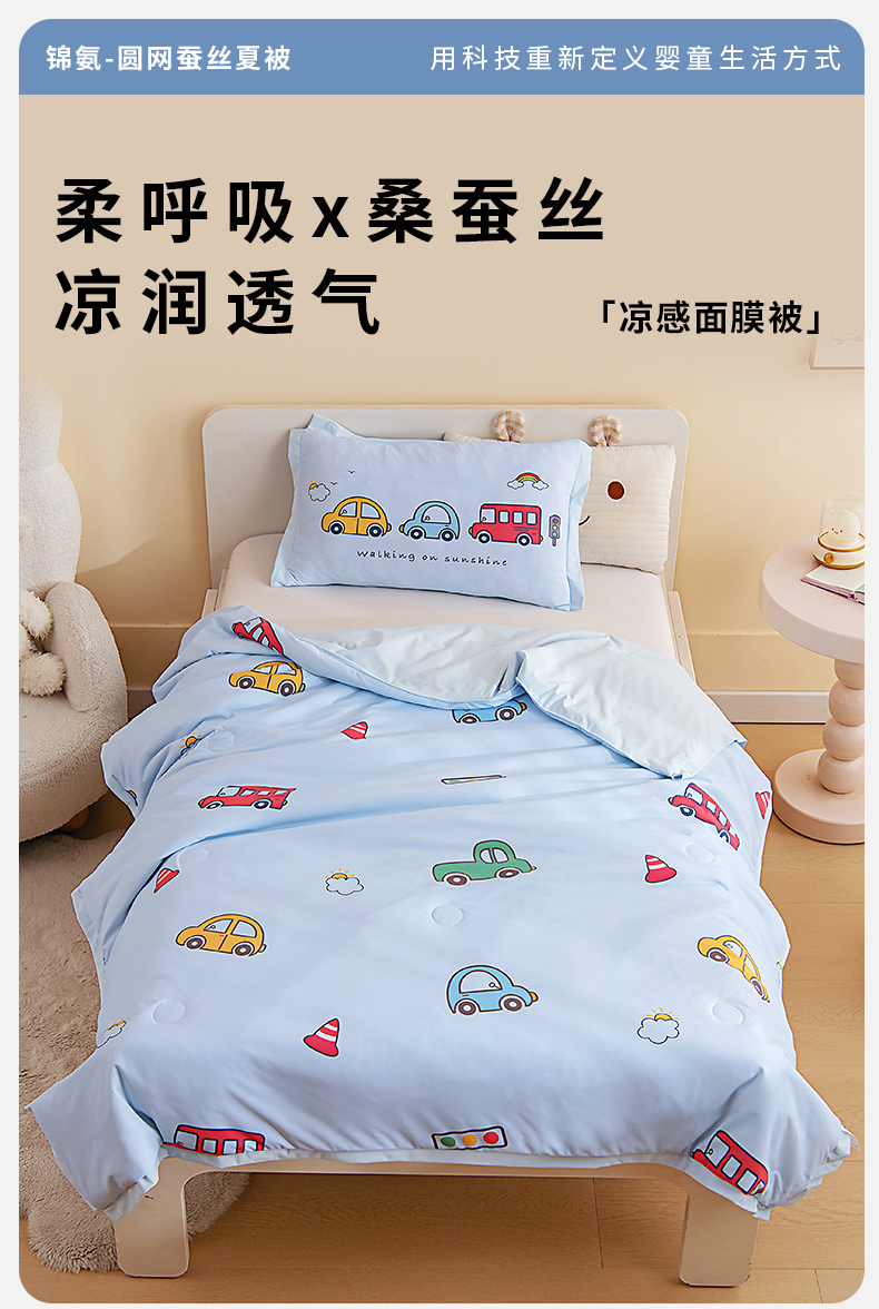 商品名称:御棉坊2026新款A类锦氨数码印花圆网蚕丝儿童夏凉被幼儿园午睡被宝宝夏季空调被薄被子 锦氨-多彩小车