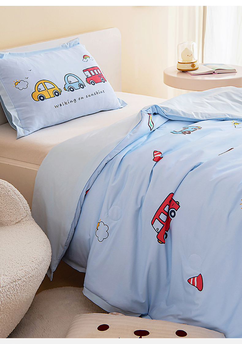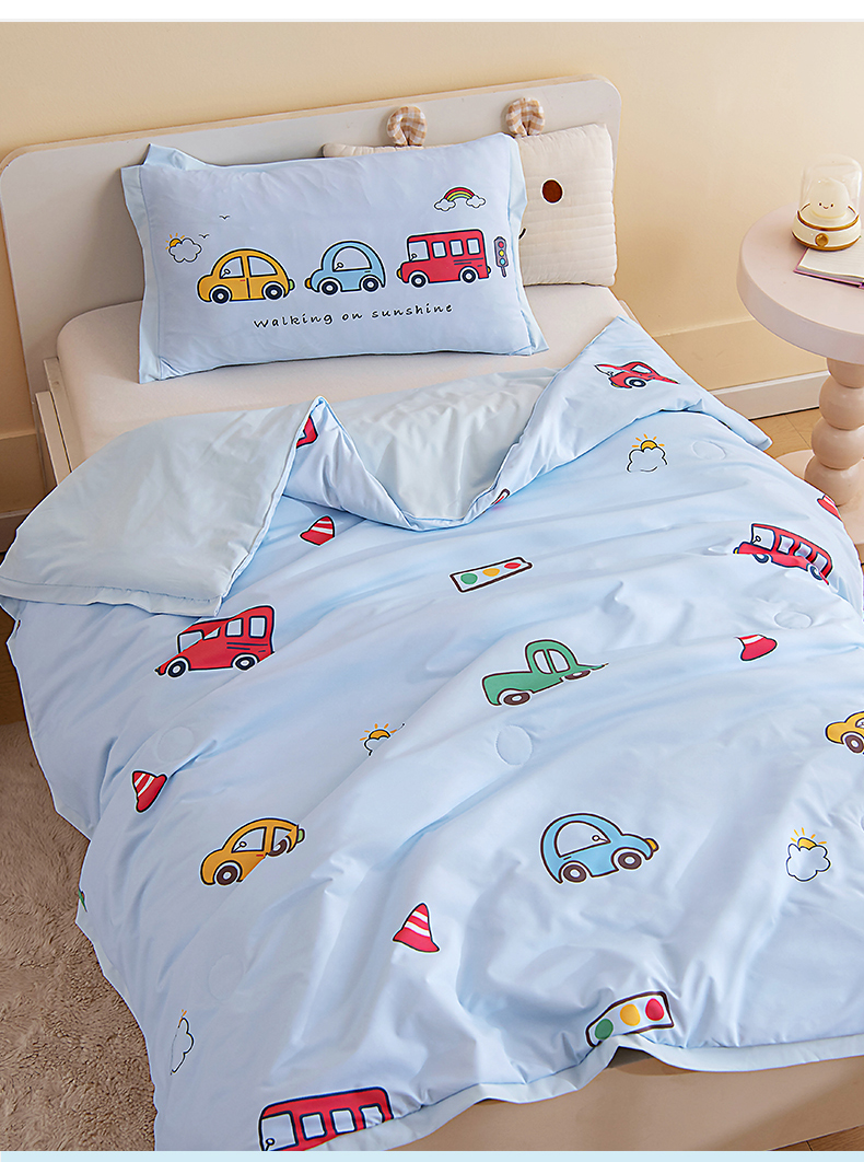 被子 > 夏被 > 御棉坊2026新款A类锦氨数码印花圆网蚕丝儿童夏凉被幼儿园午睡被宝宝夏季空调被薄被子 锦氨-多彩小车