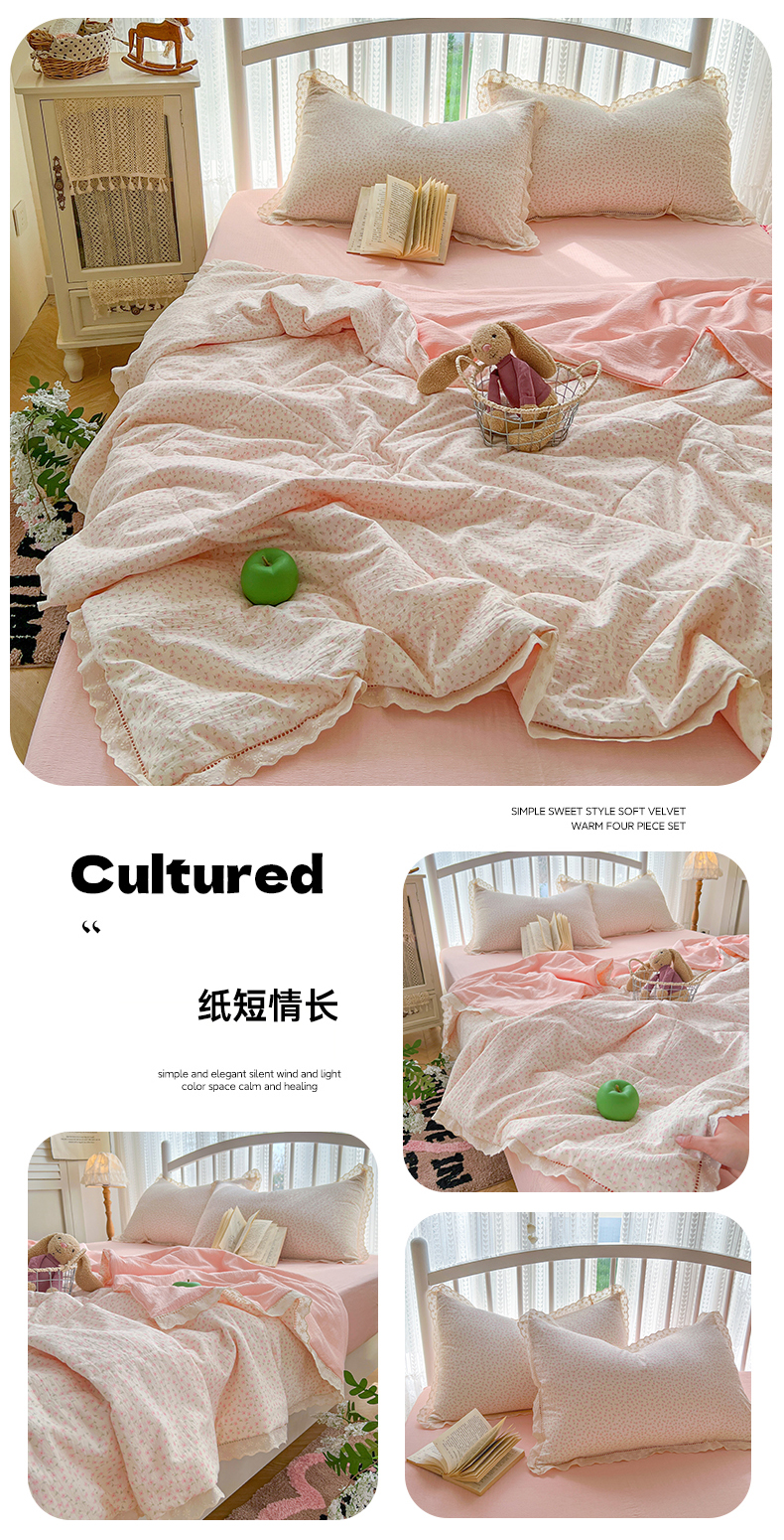 商品名称:港岛妹妹 2026新款镂空花边夏被 夏被四件套 格格屋