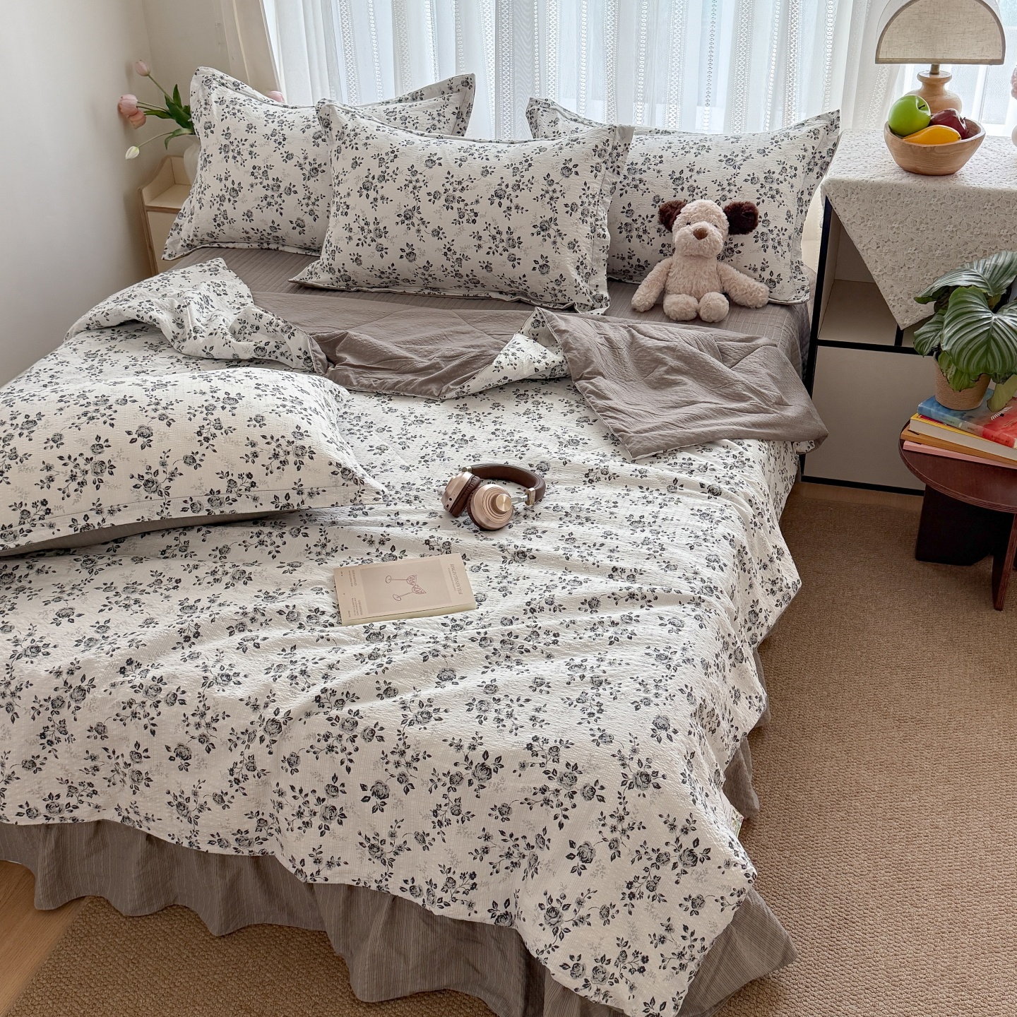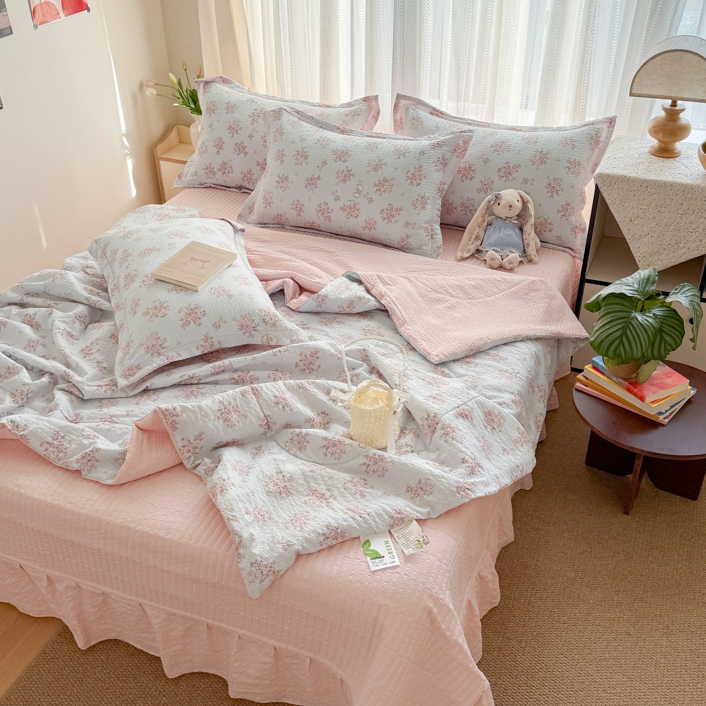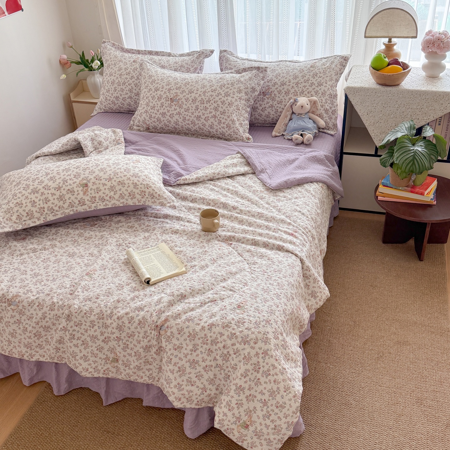 (总)禾沐 2026新款泡芙棉泡芙纱夏被四件套,爱心点点,波点,费尔岛小狗,古典格,红果兔兔,花间娃娃,灰爱心,丽莎,栗色木马纹,蜜桃小兔,描线猫,柔诗意,甜桃心,星芒凯蒂,秀妍,只闻花香,仲夏,组合