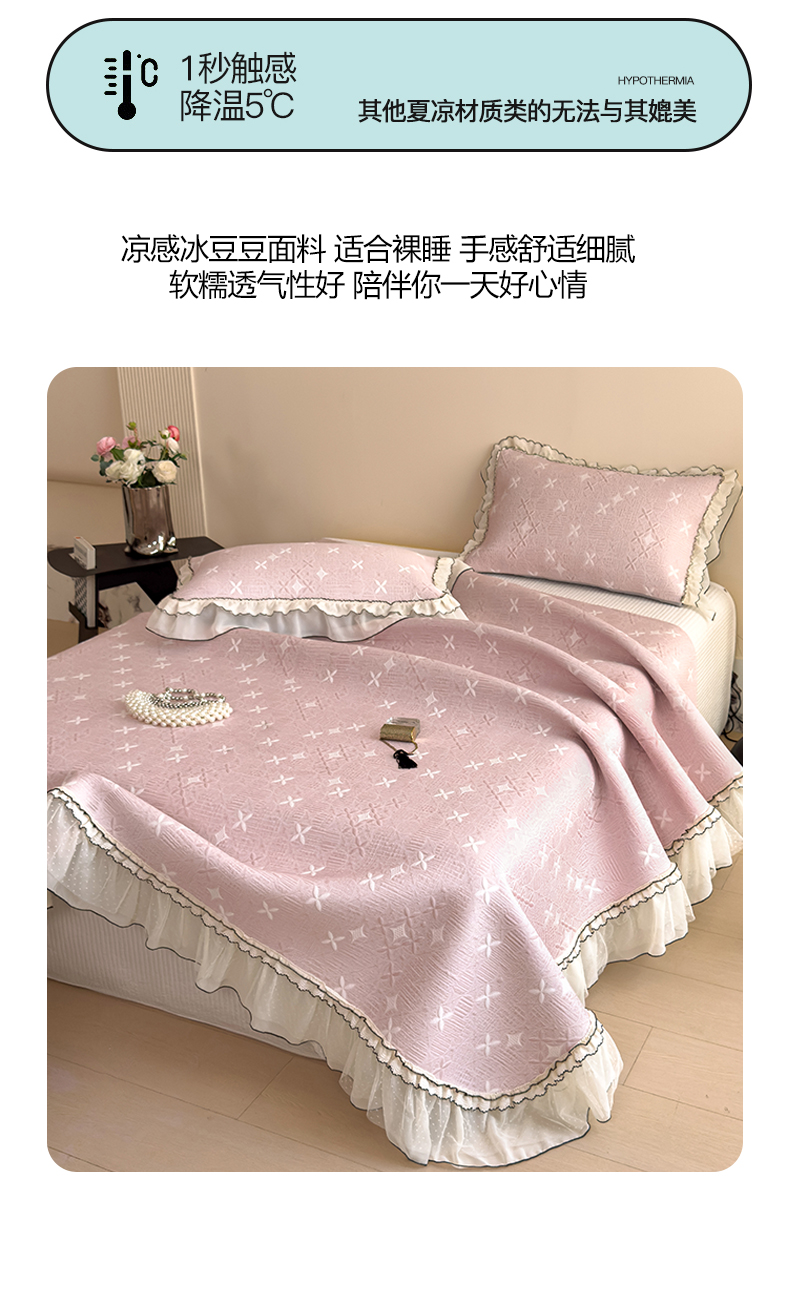 慕木家纺 2026新款满天星系列冰豆豆凉席(三明治复合)乙纶面料 满天星-粉