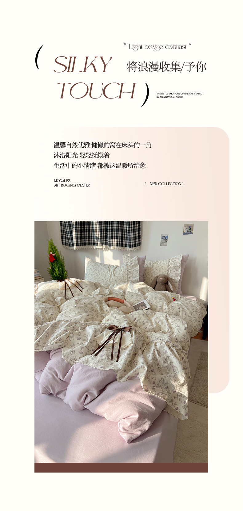 (总)栩裕纺织 2026新款仿棉水洗棉四件套,花漾格调-嫩粉,花漾格调-卡其,花漾格调-浅绿,花漾格调-浅紫,花漾格调-雾蓝