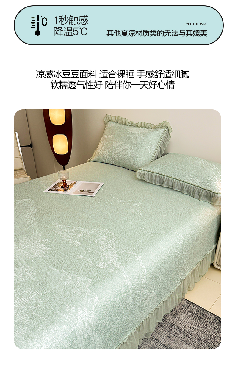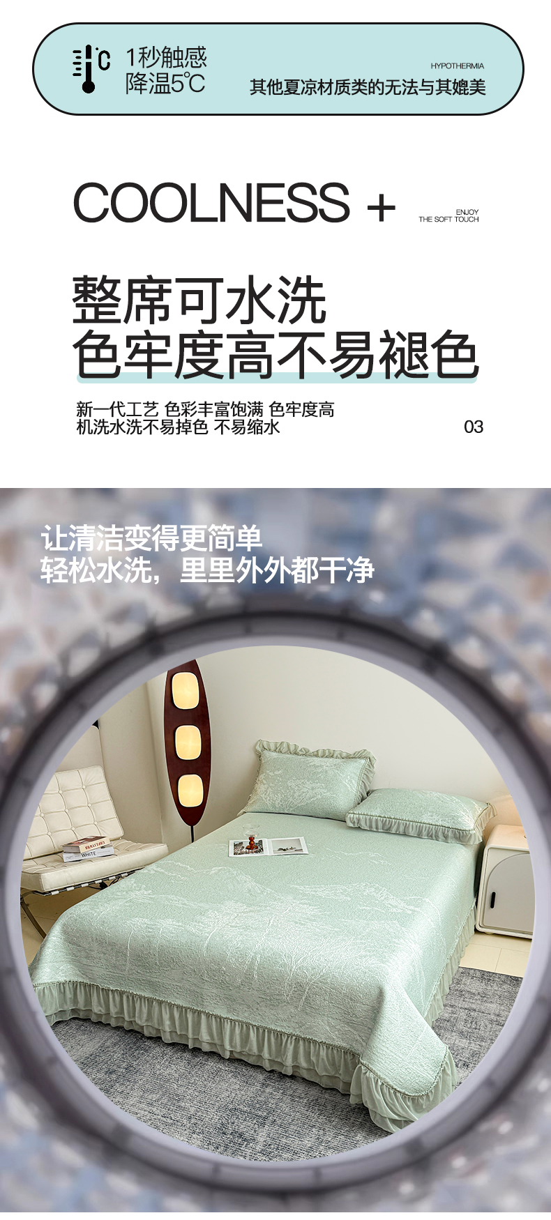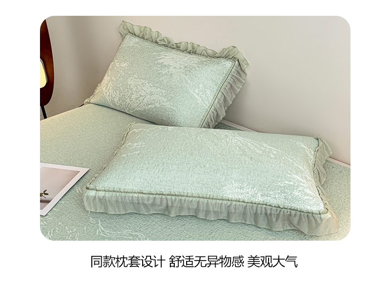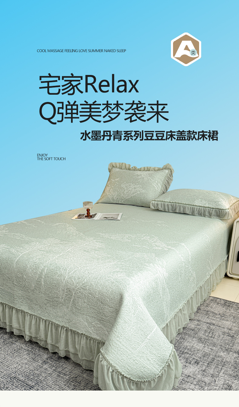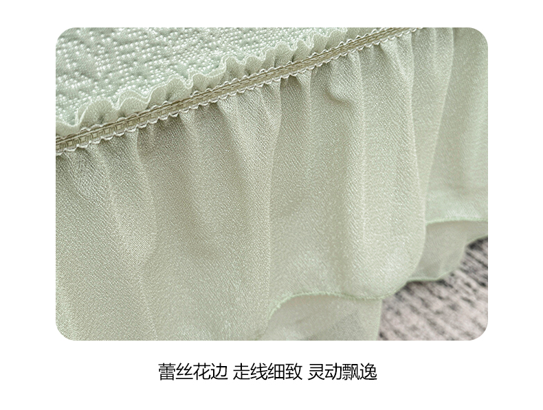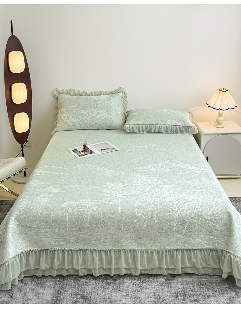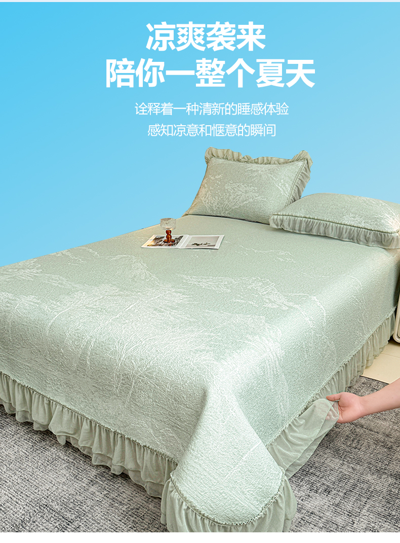 慕木家纺 2026新款A类三明治复合乙纶提花冰豆豆花边床盖款床裙水墨丹青系列(提供买家秀) 水墨丹青-绿