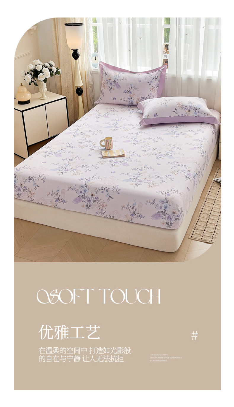 • 91家纺网 家纺一手货源 找家纺 慕木家纺 2026新款A类纯色印花慕丝棉床笠系列(抽空压缩可供跨境)(提供买家秀) 奶油黄