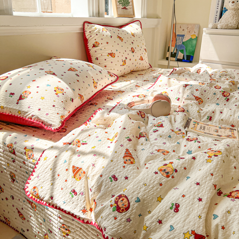 (总)禾沐 2026新款泡芙纱三角针床盖夏被四件套,波点,粉色小心心,格格心,旧街星星,咖豹纹,兰爱心,描线小猫粉,描线小猫咖,浅川纹,森林描绘,田园兔,星光凯蒂,只闻花香,紫陌,KT 猫