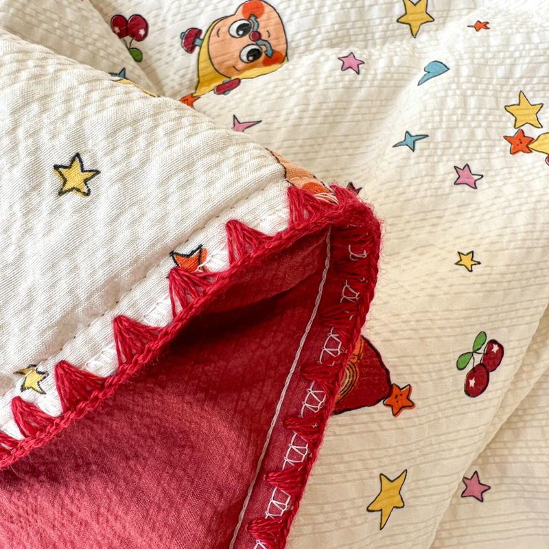 禾沐 2026新款泡芙纱三角针床盖夏被四件套 旧街星星