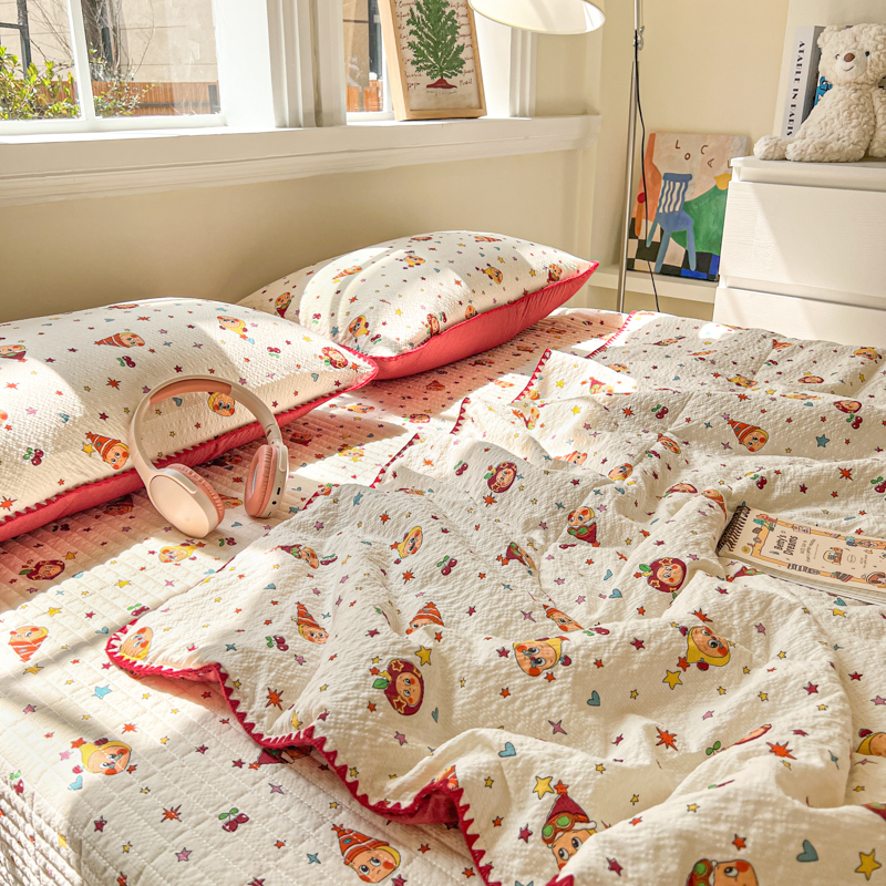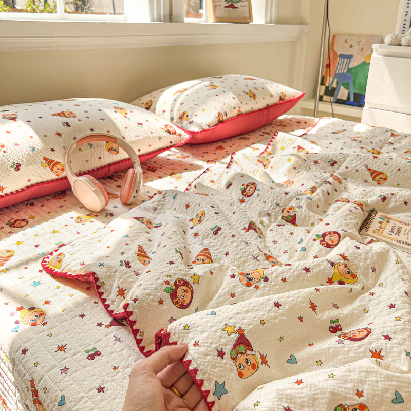 商品名称:禾沐 2026新款泡芙纱三角针床盖夏被四件套 旧街星星