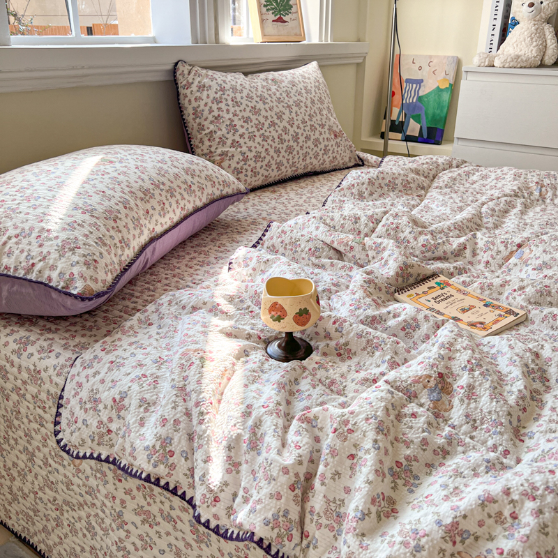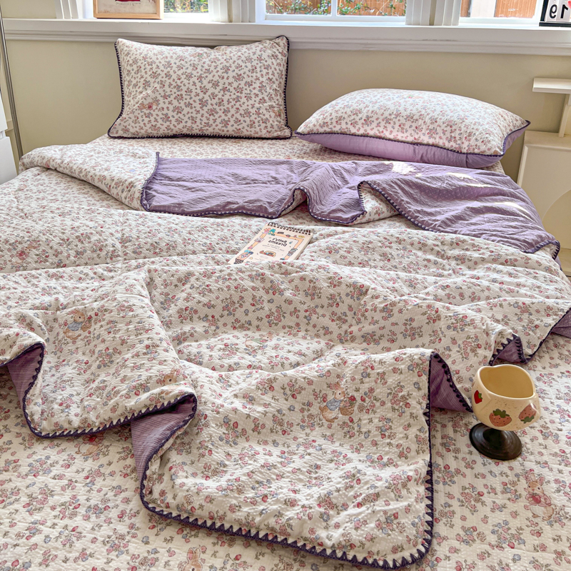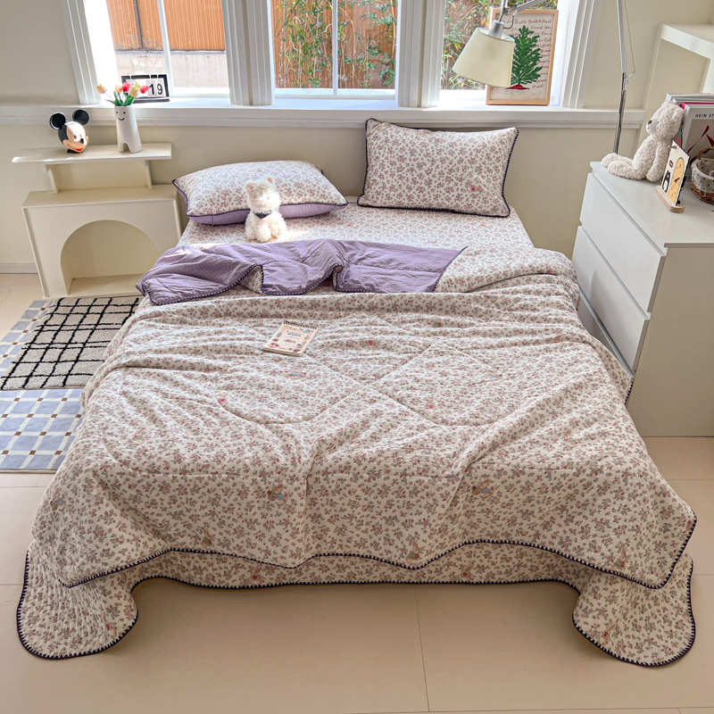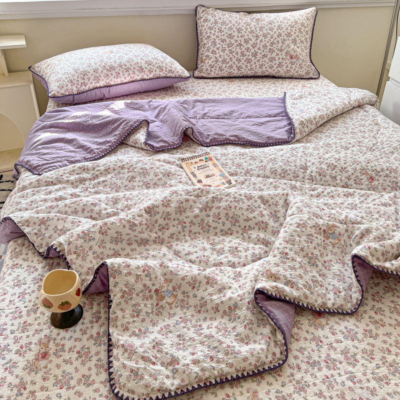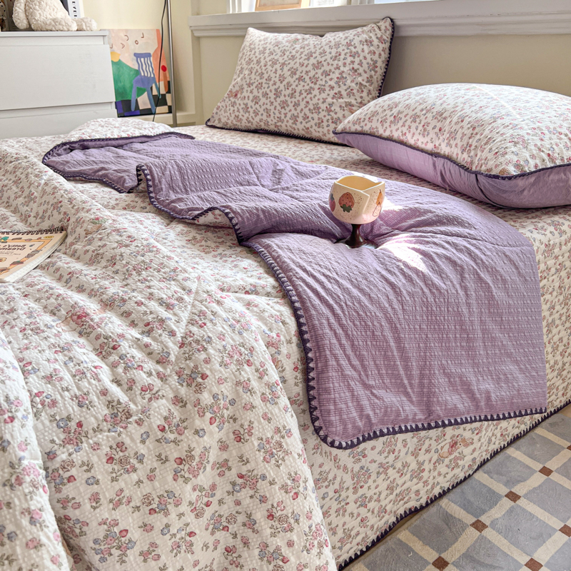 禾沐 2026新款泡芙纱三角针床盖夏被四件套 紫陌