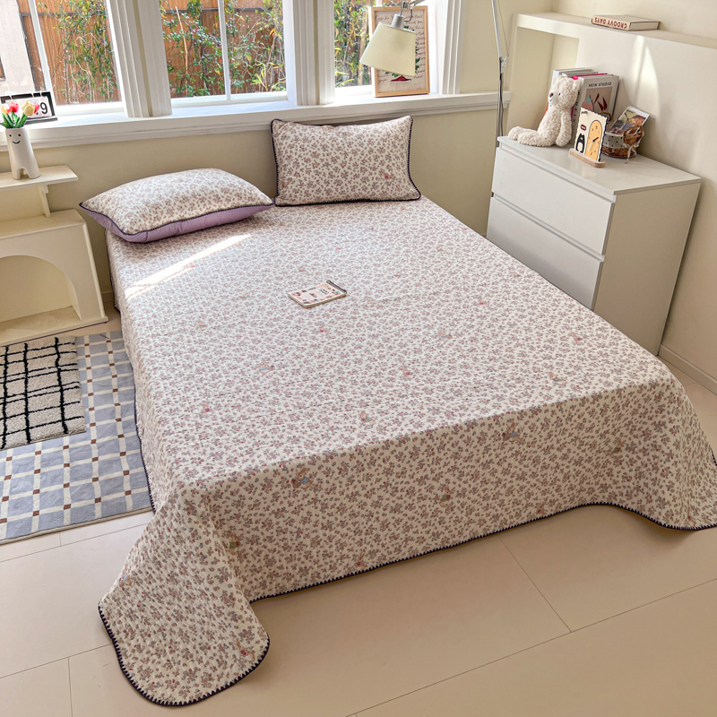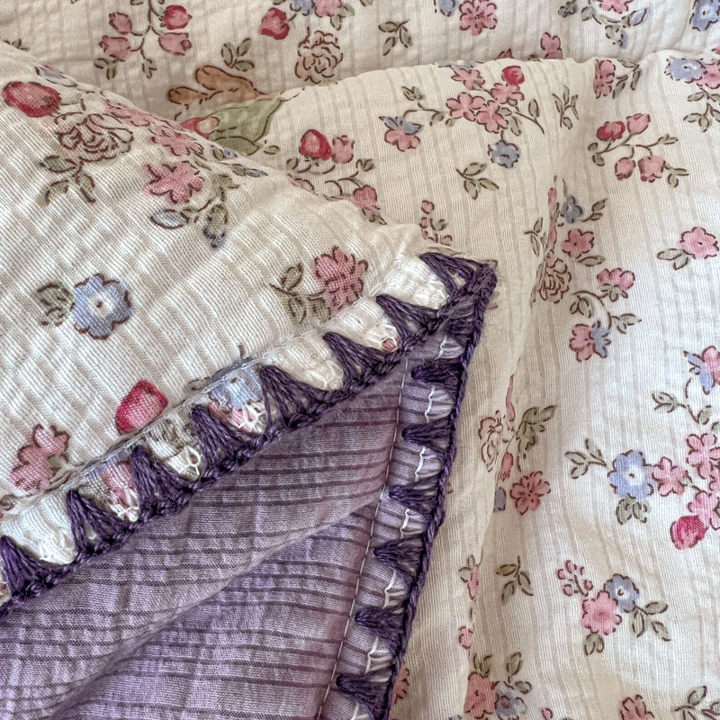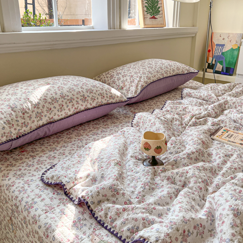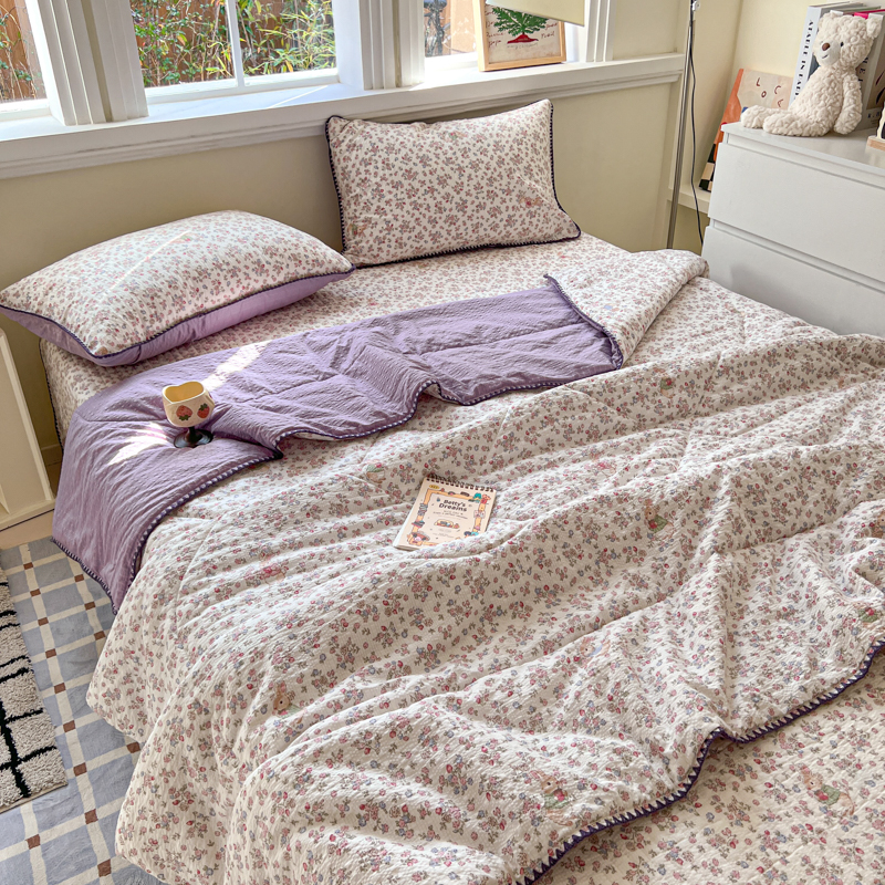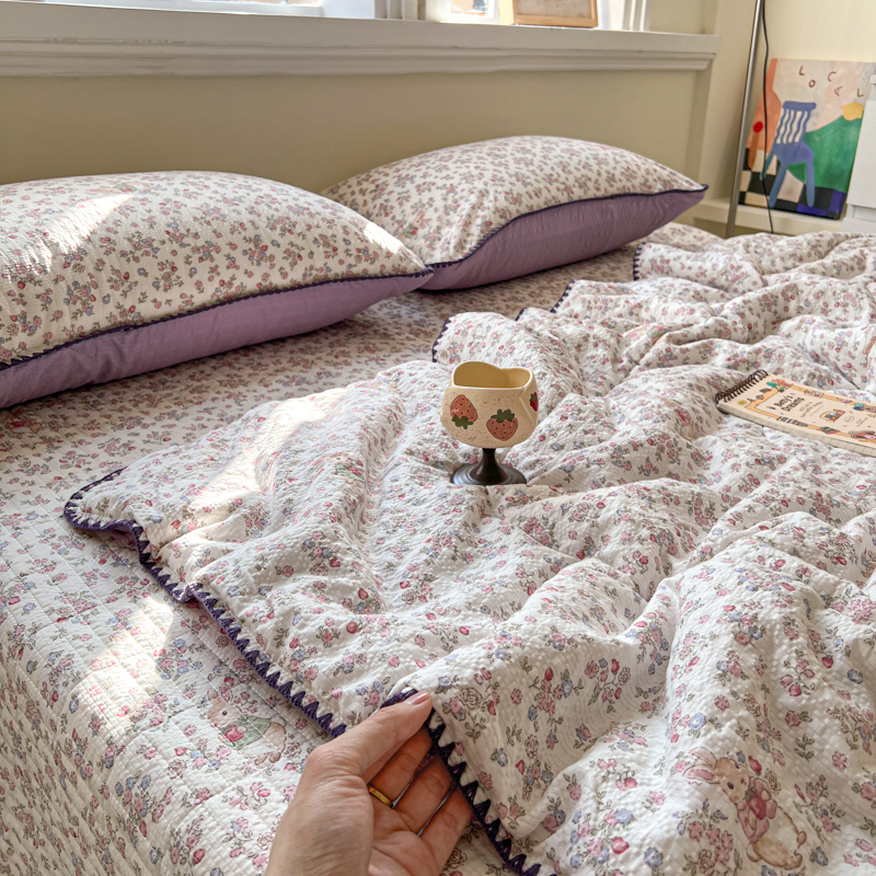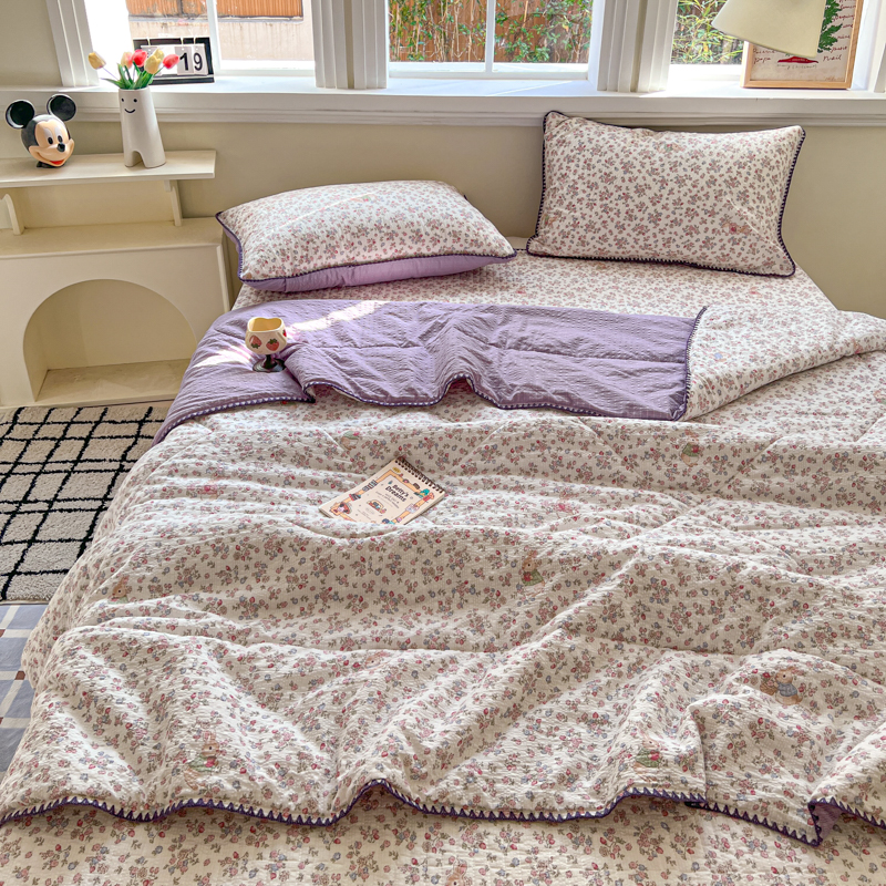 禾沐 2026新款泡芙纱三角针床盖夏被四件套 紫陌