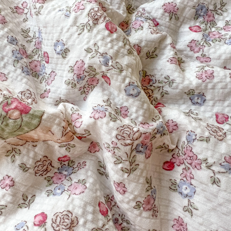 禾沐 2026新款云感泡芙纱全棉蕾丝花边款夏被四件套 田园免,田园免