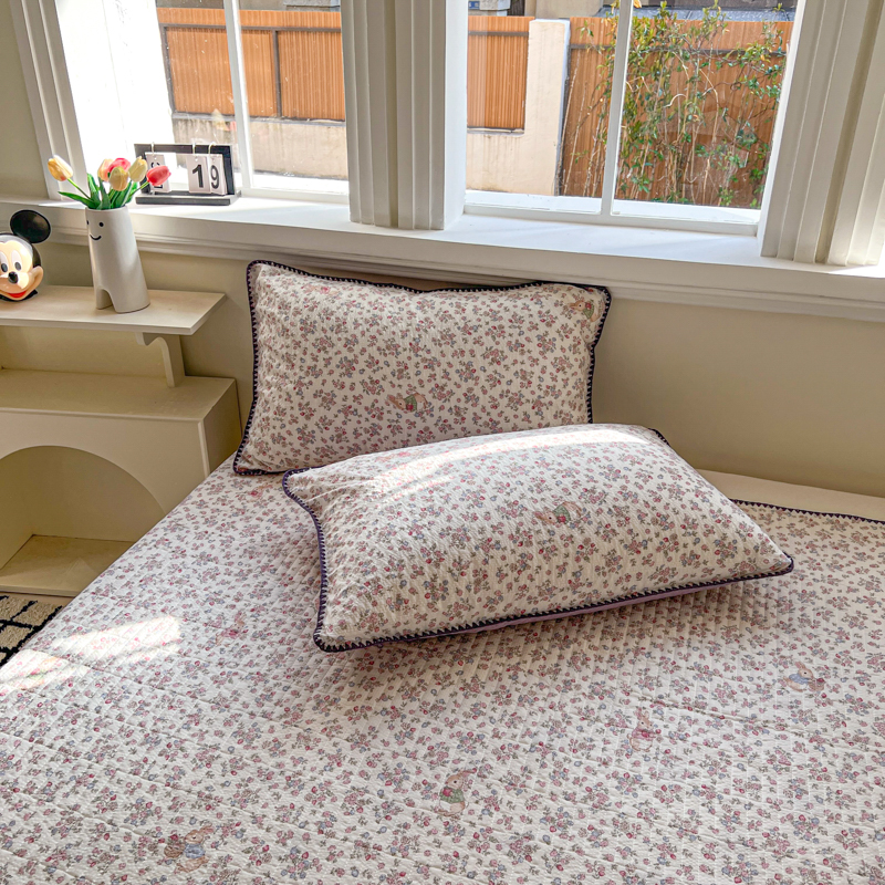 (总)禾沐 2026新款泡芙纱三角针床盖夏被四件套,波点,粉色小心心,格格心,旧街星星,咖豹纹,兰爱心,描线小猫粉,描线小猫咖,浅川纹,森林描绘,田园兔,星光凯蒂,只闻花香,紫陌,KT 猫