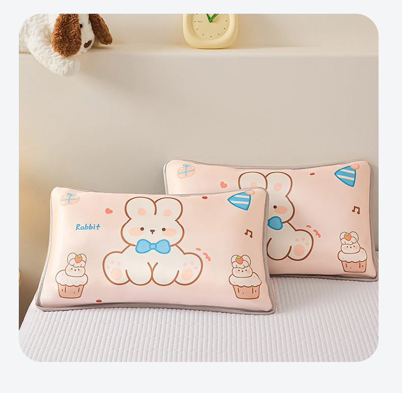 云恋家纺 2026新款儿童卡通A类冰丝凉席枕套一对装夏季凉感丝可拆枕头儿童学生单人枕芯套 云朵小象