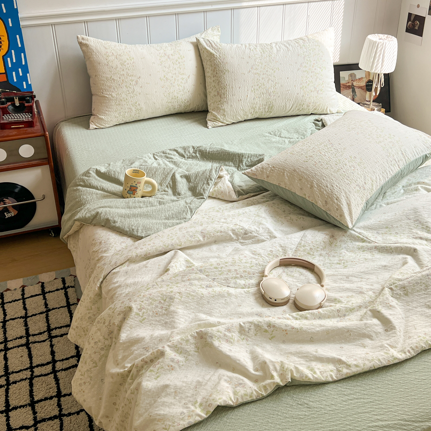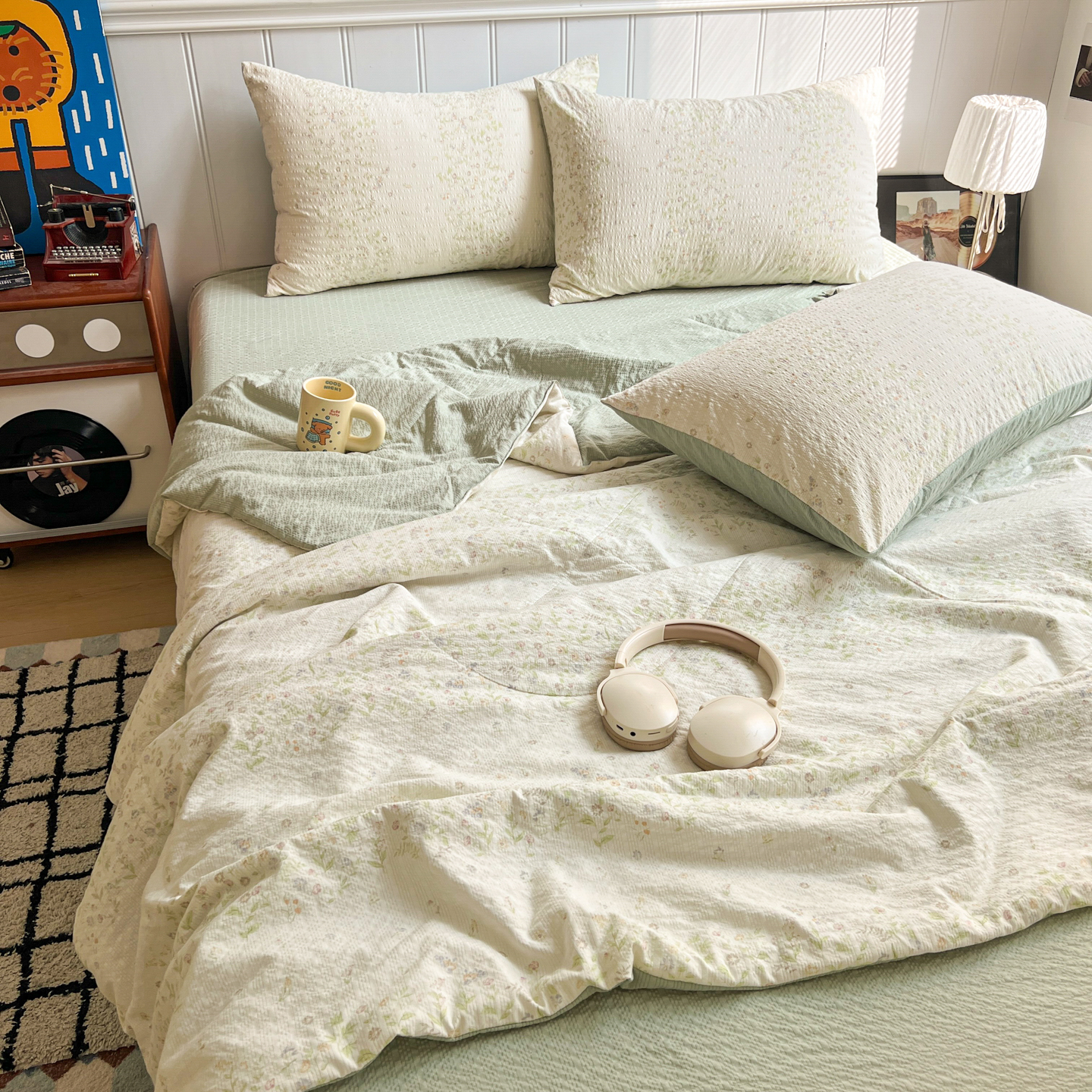 (总)禾沐 2026新款云感泡芙棉泡芙纱床盖夏被四件套,灰爱心,爱心点点,波点,费尔岛小狗,古典格,红果兔兔,花间娃娃,丽莎,栗色木马纹,蜜桃小兔,描线猫,柔诗意,甜桃心,星芒凯蒂,秀妍,只闻花香,仲夏,组合