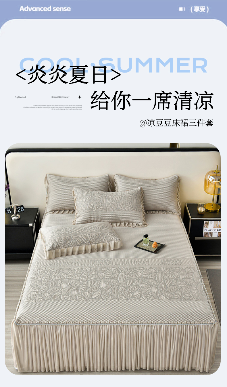 星窝家纺 2026新款冰豆豆床裙款凉席 林间棕影