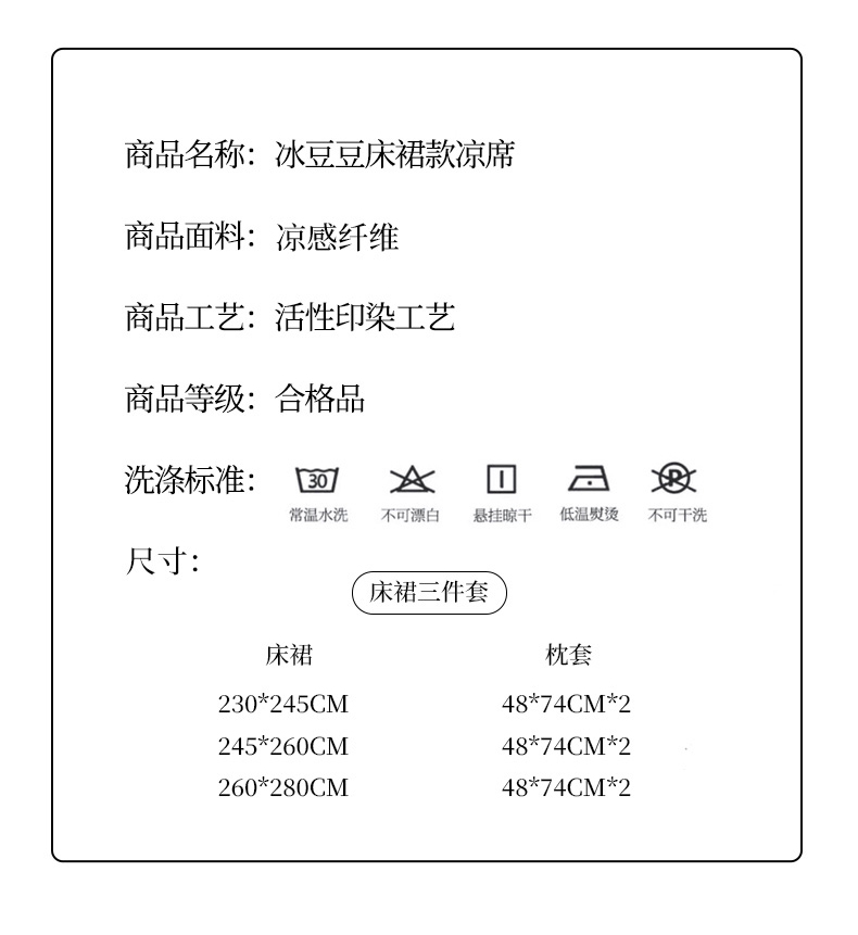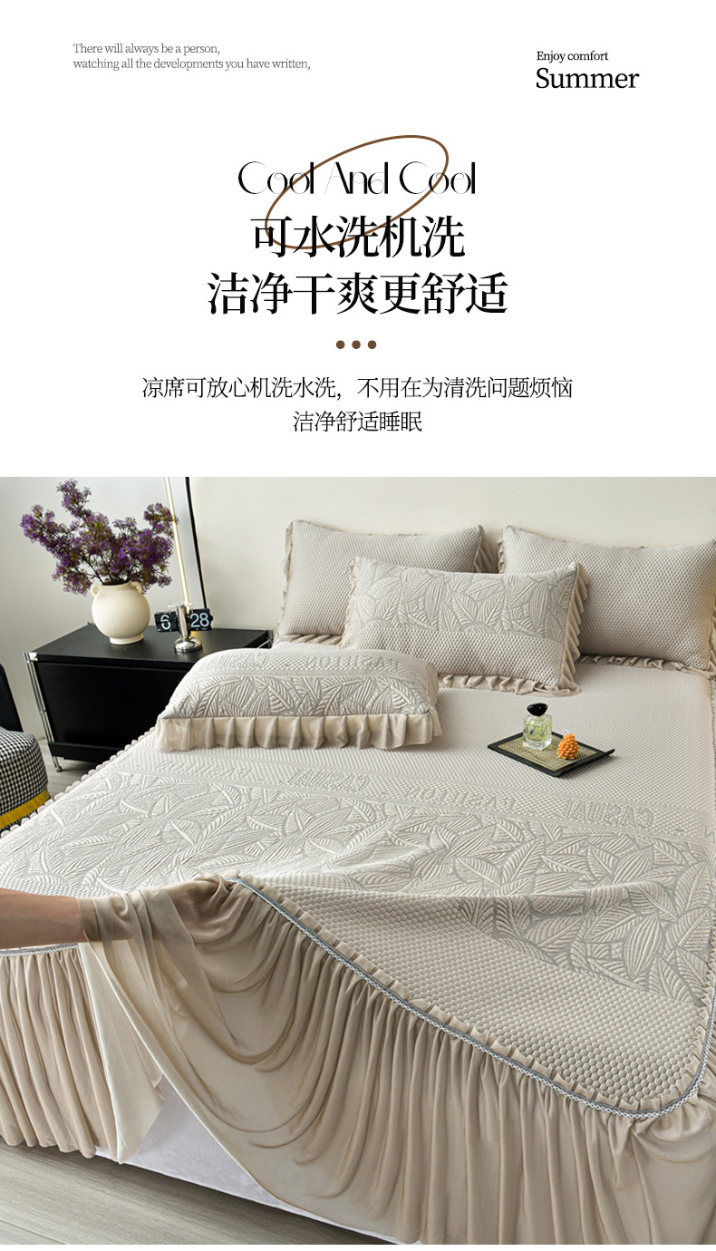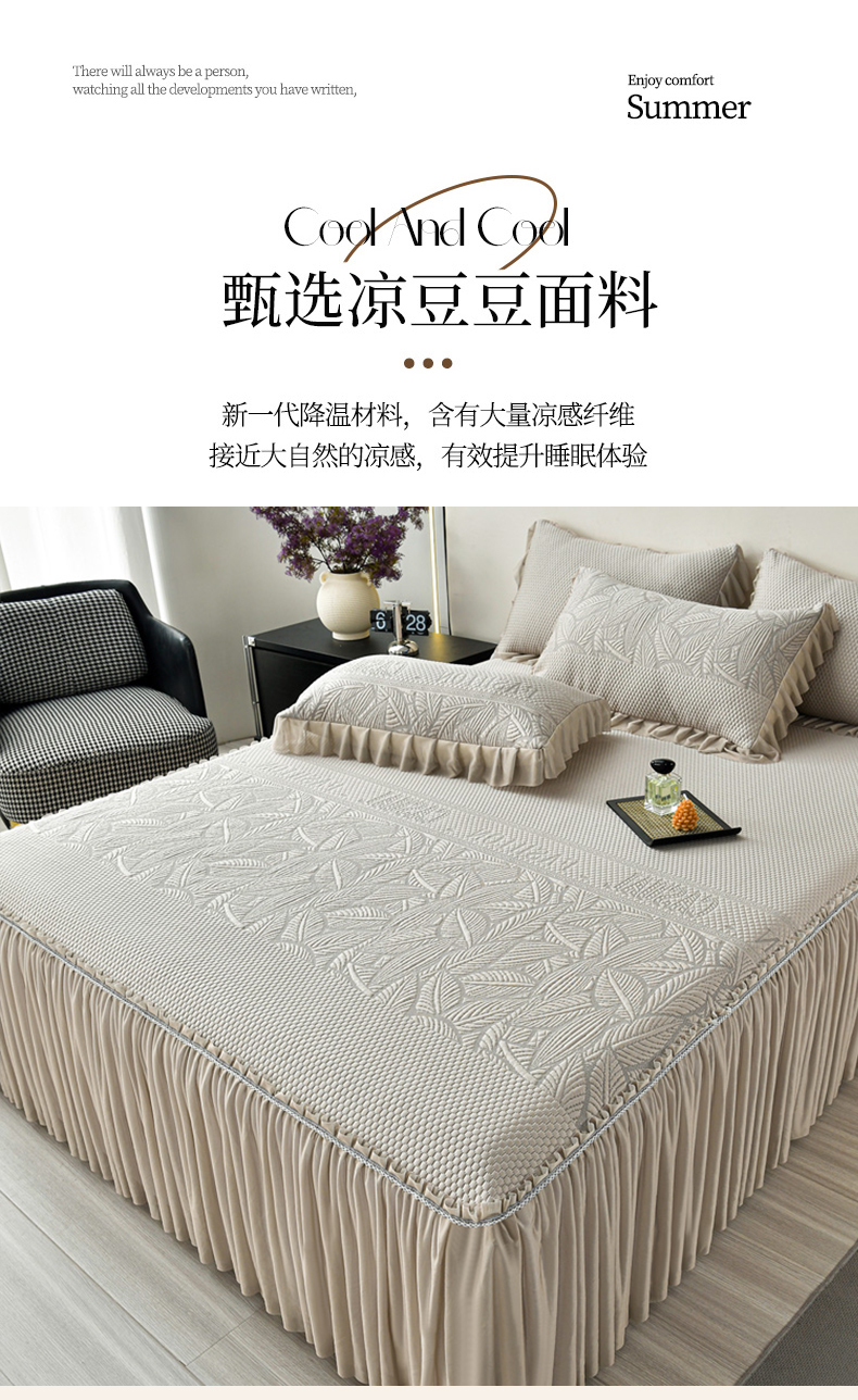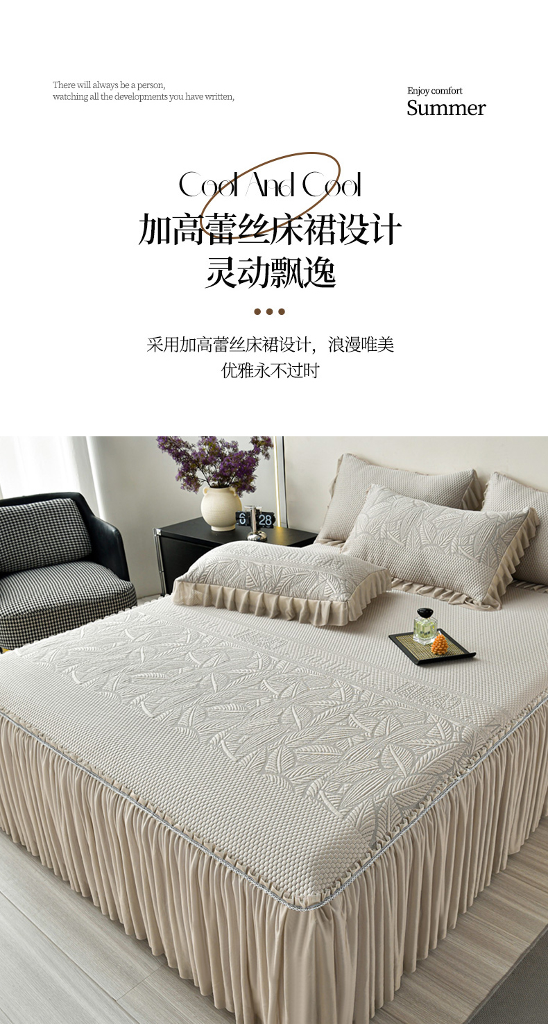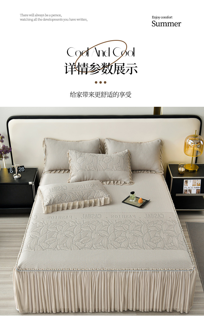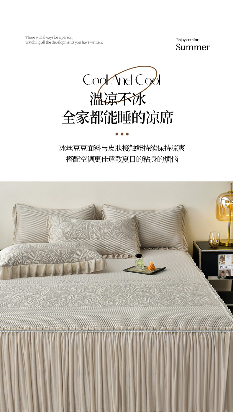 商品名称:星窝家纺 2026新款冰豆豆床裙款凉席 林间棕影