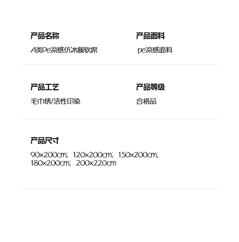 商品名称:(总)顾里家纺 2026新款Pe凉感仿冰藤软席凉席三件套