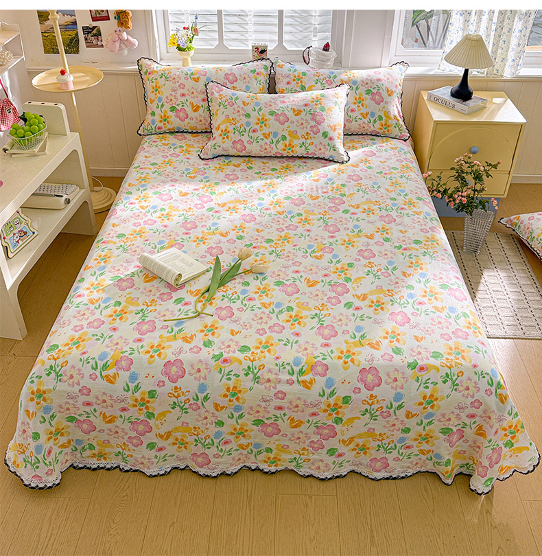 当前位置: 91家纺网 > 商品网购 > 床上用品 > 床单 > 花伞家居 2026新款蕾丝花边款皱皱双层纱单床单床单单件含买家秀 床单-盛开粉