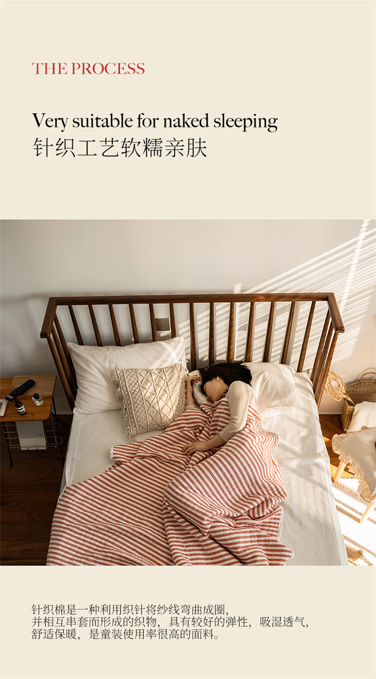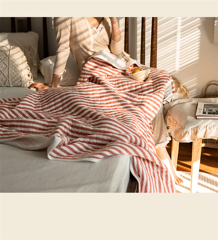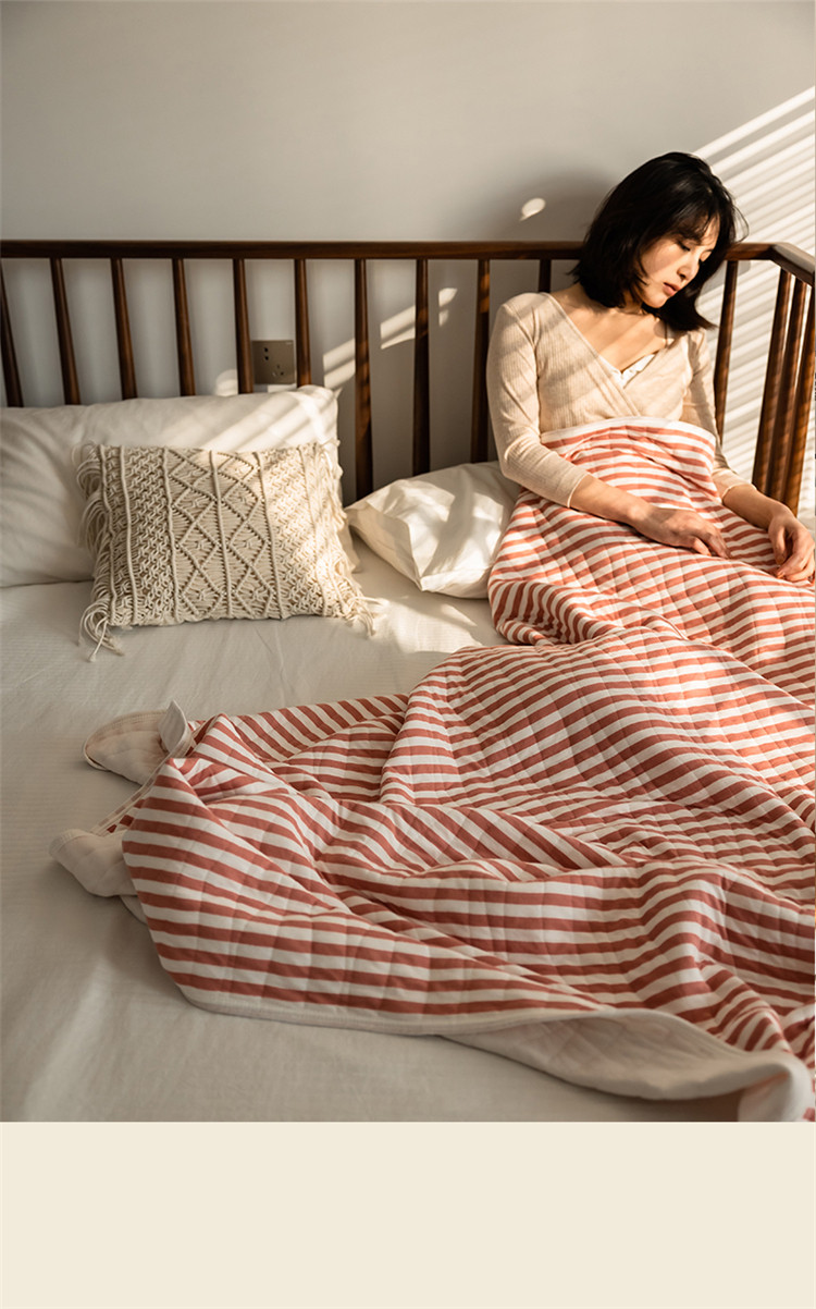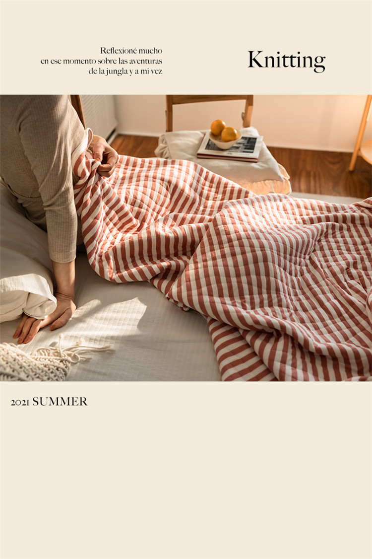 新款 全棉针织棉夏被 天竺棉夏凉被 豆沙条纹