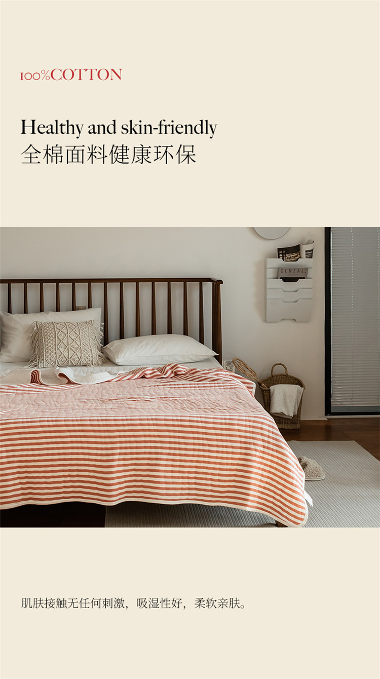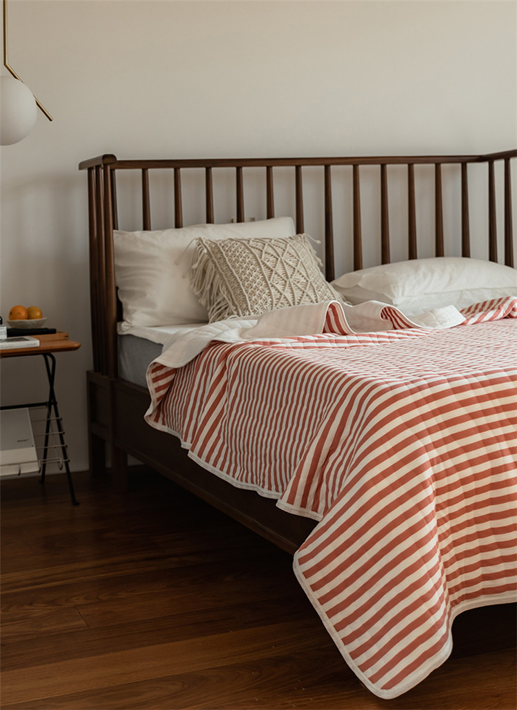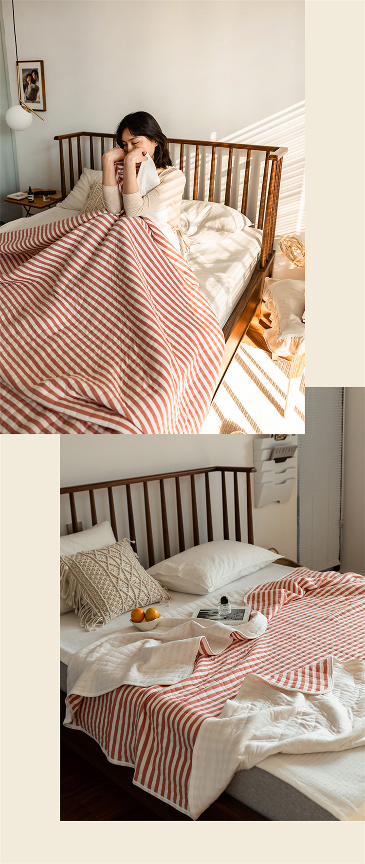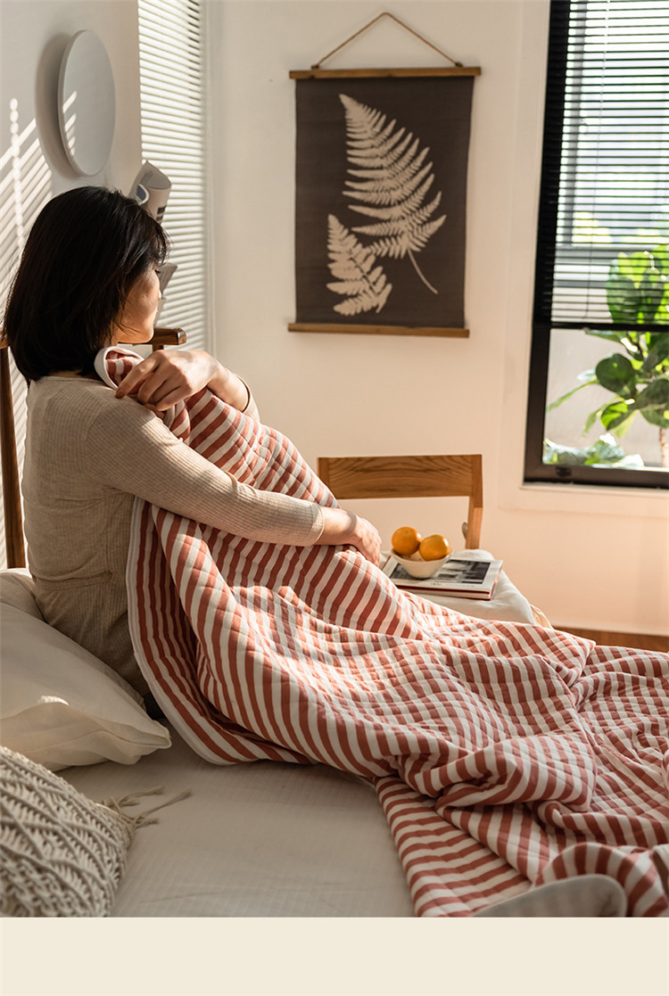 新款 全棉针织棉夏被 天竺棉夏凉被 豆沙条纹