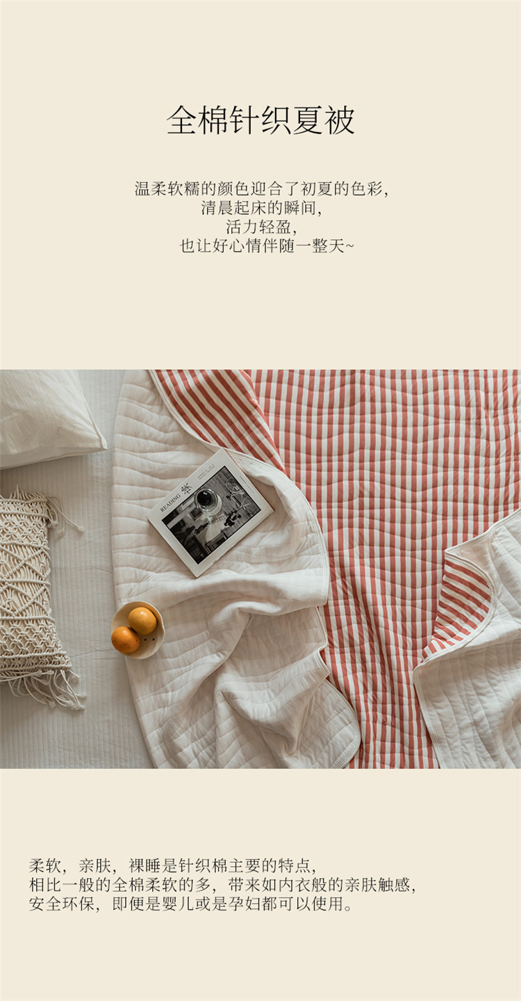 商品名称:新款 全棉针织棉夏被 天竺棉夏凉被 豆沙条纹