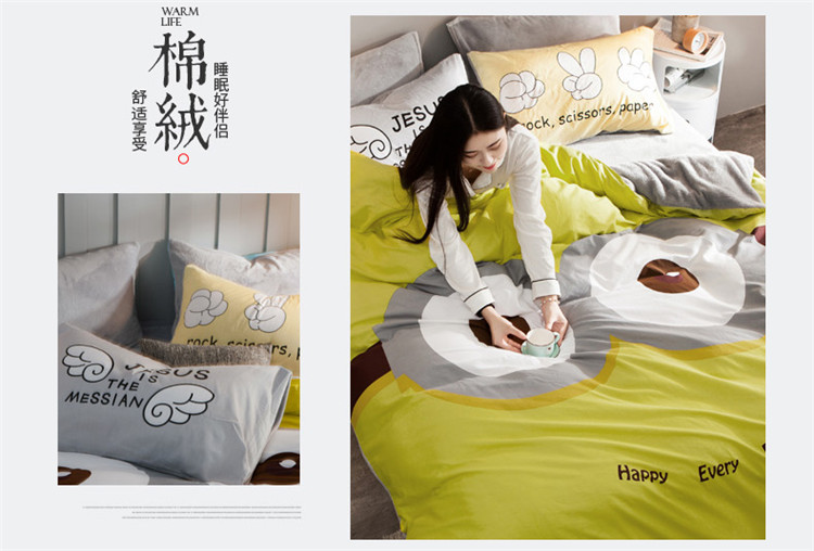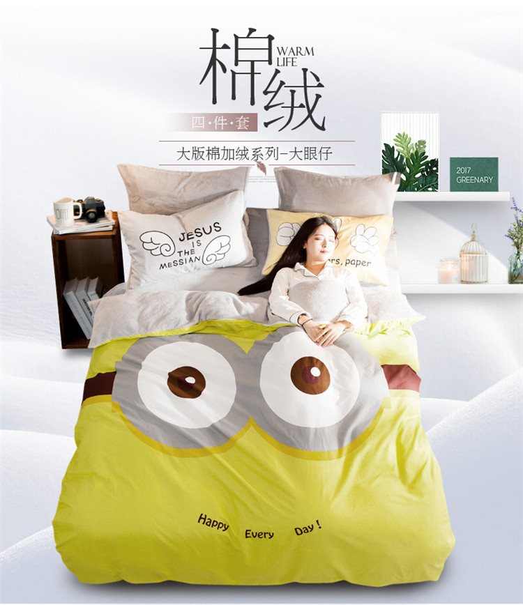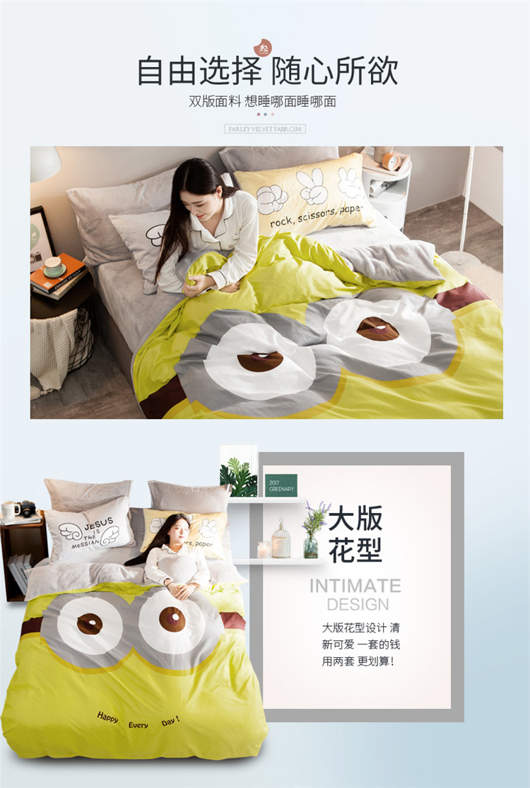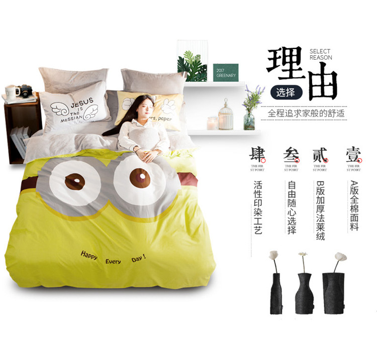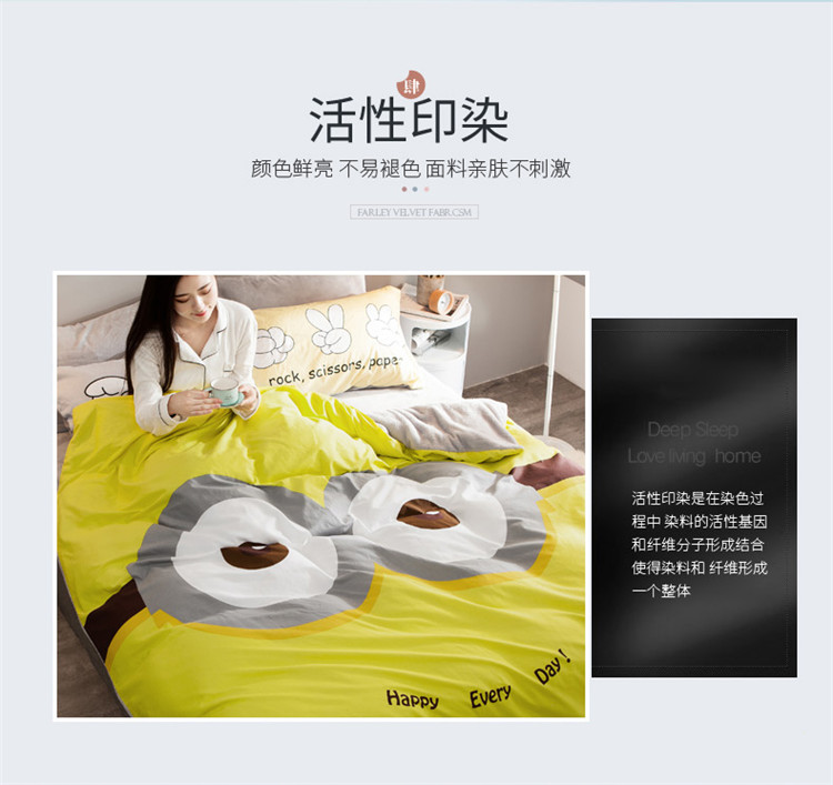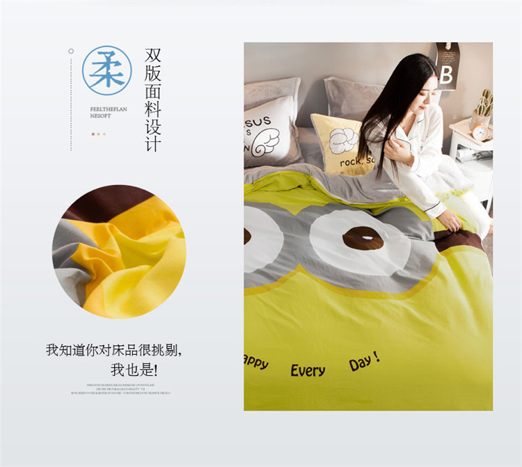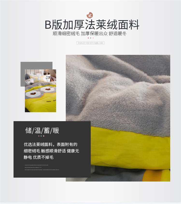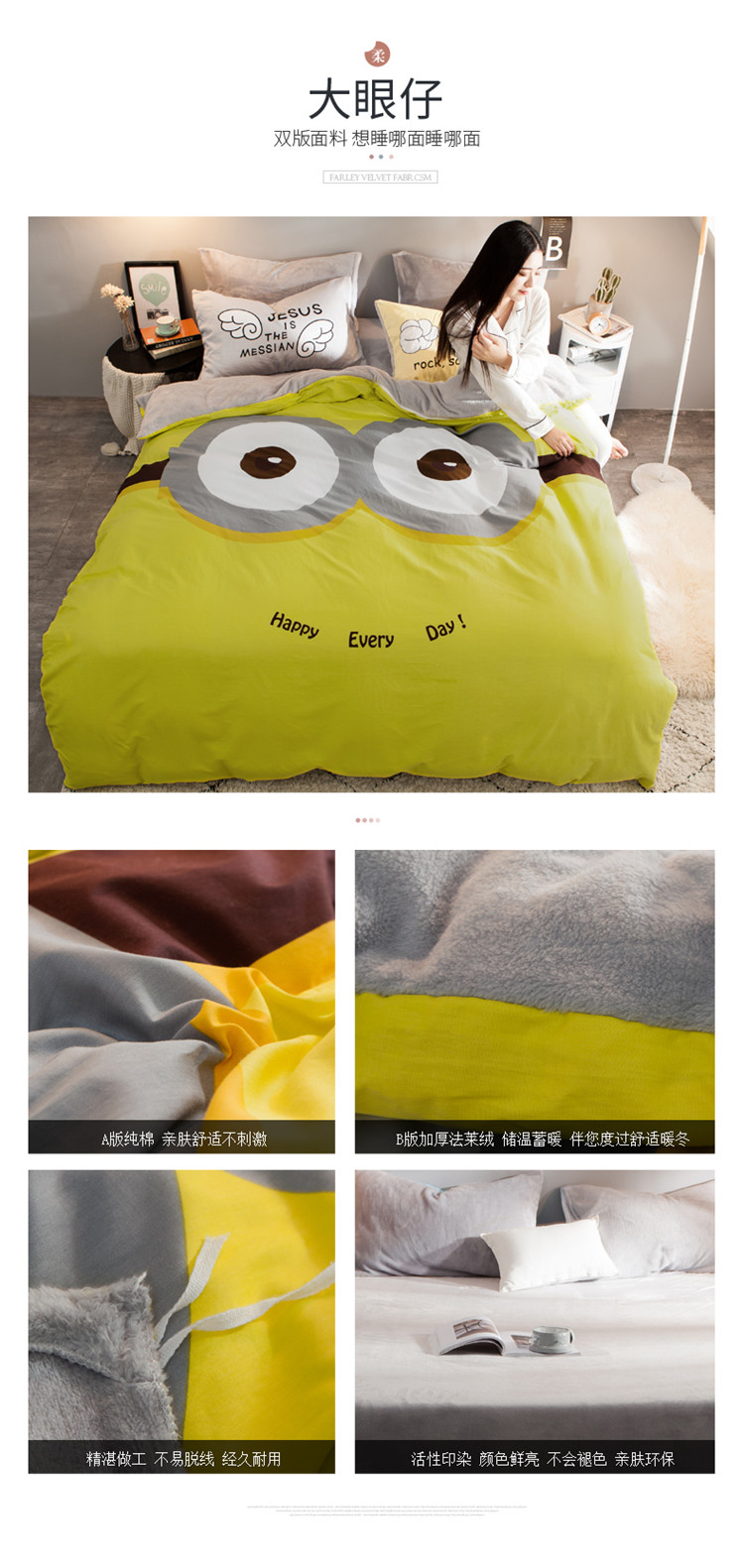 涵宸家纺 新品绒-A棉大版B法莱绒套件床单款 大眼仔