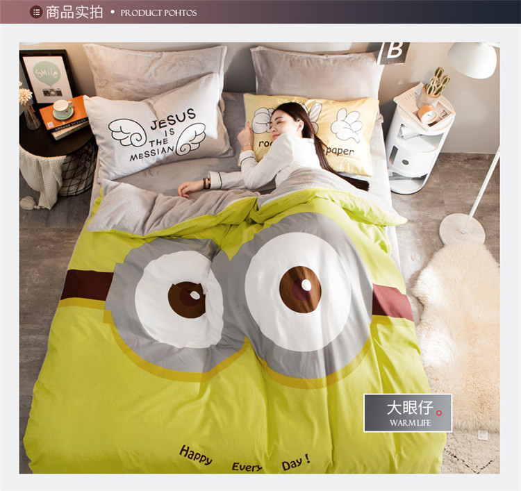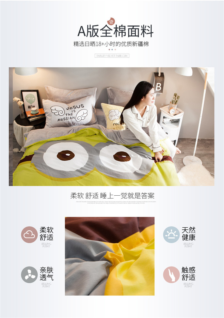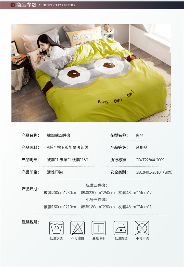 商品名称:涵宸家纺 新品绒-A棉大版B法莱绒套件床单款 大眼仔