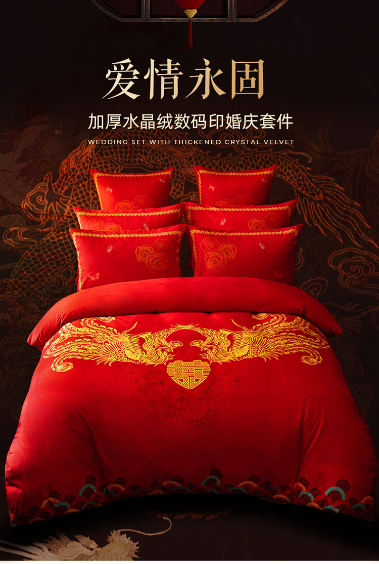 商品名称:(总)宜凡家纺 2019新款水晶绒数码印花婚庆四件套