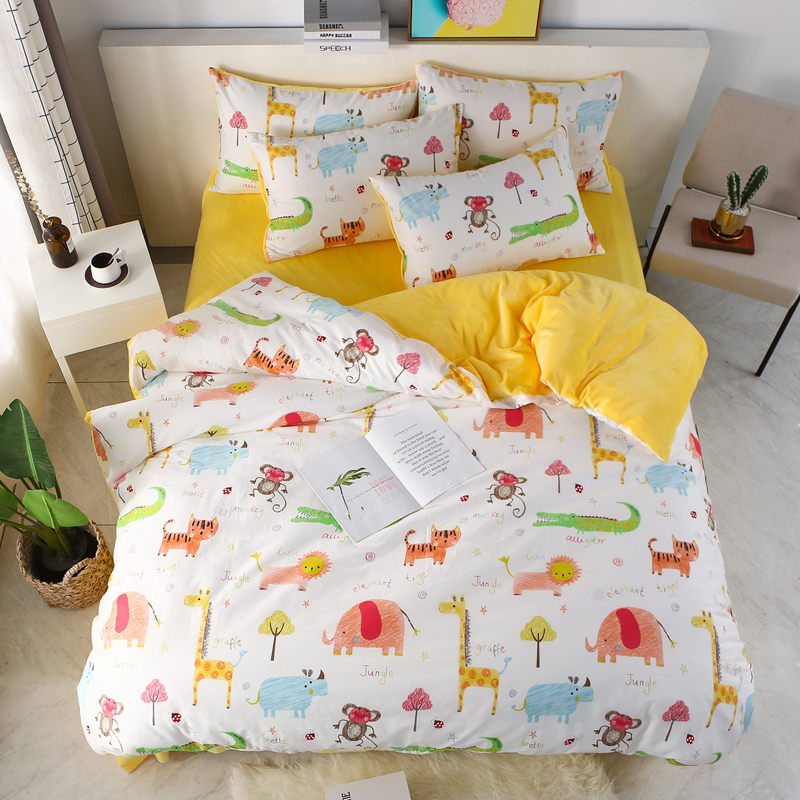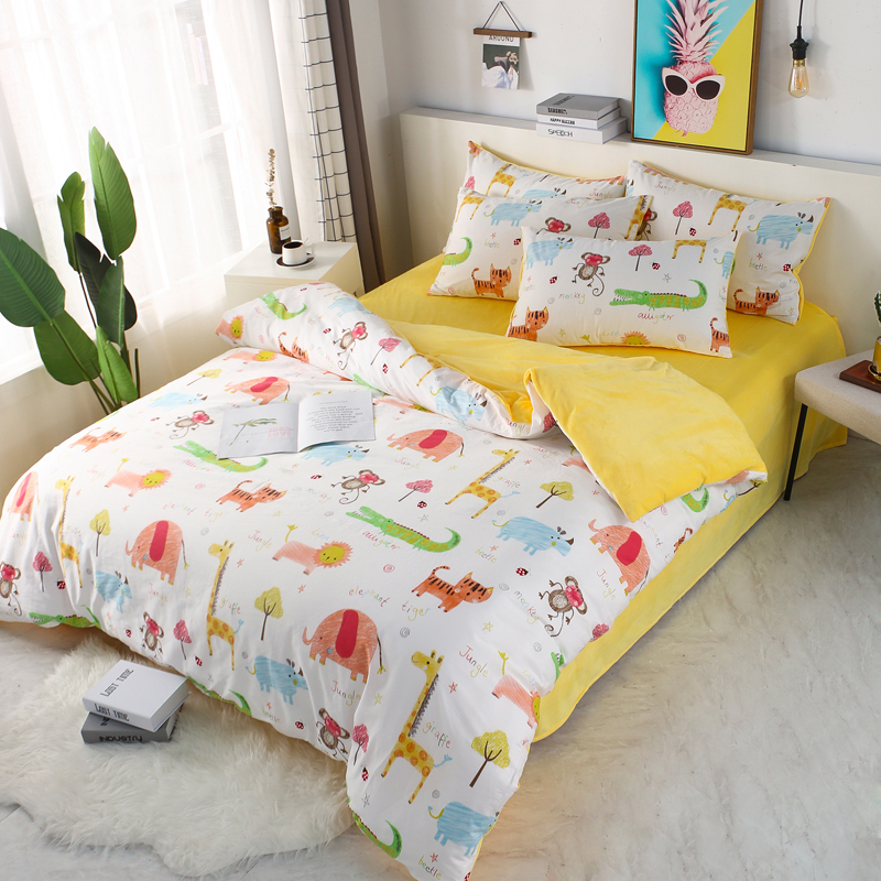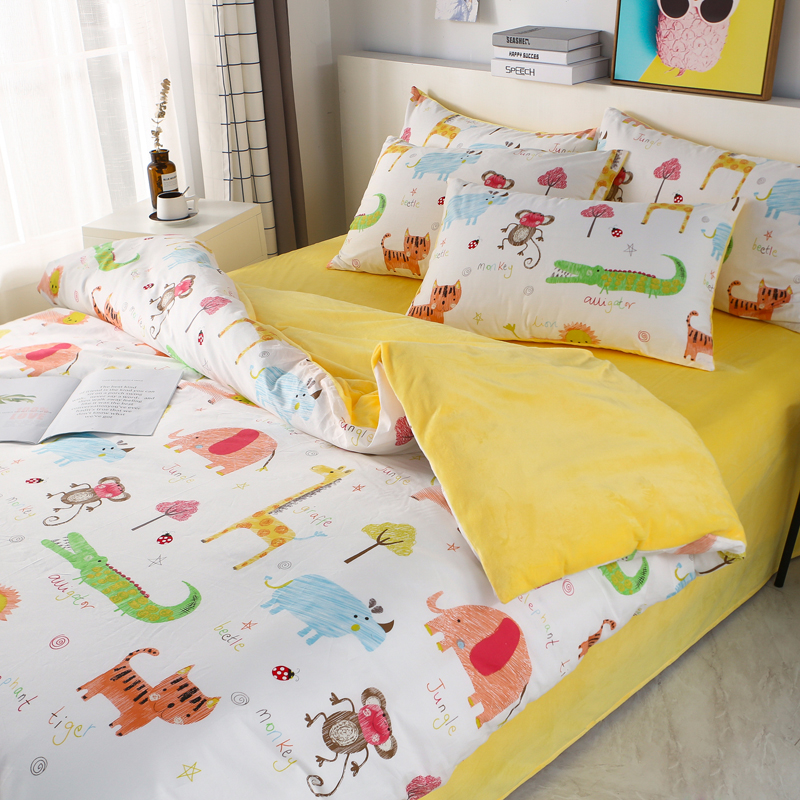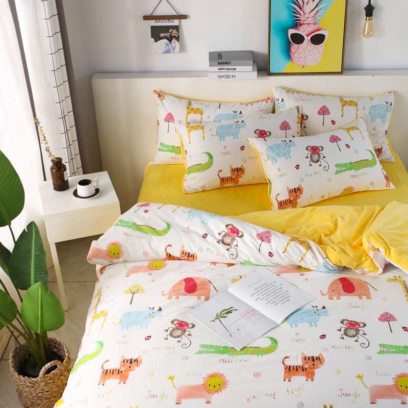 一米阳光 2019新款A棉B纯色绒四件套 动物城