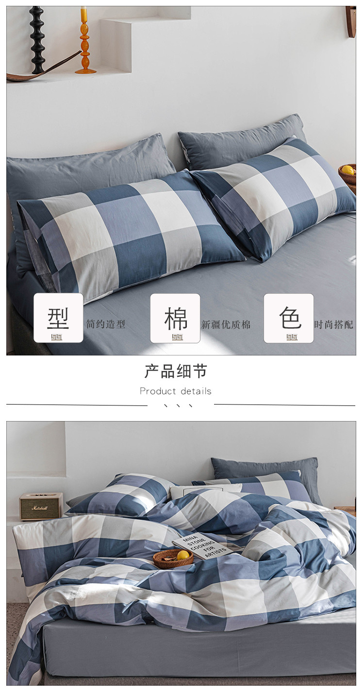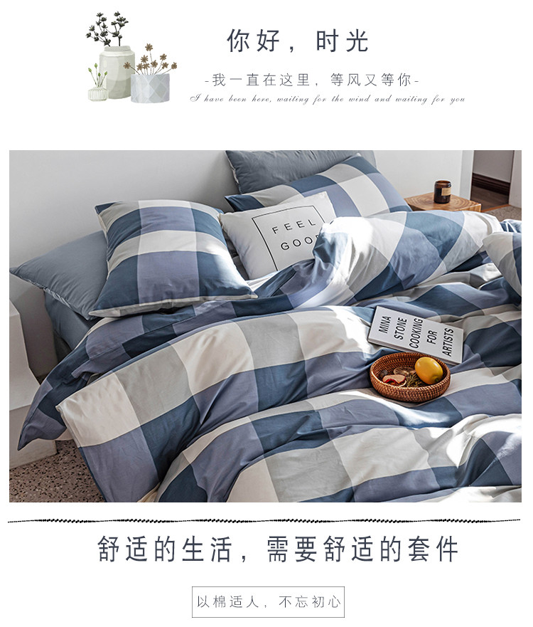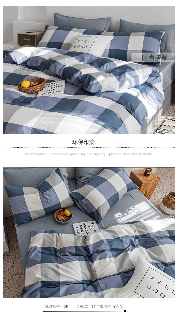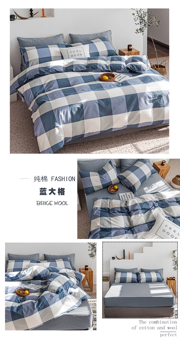 商品名称:简宜 2020新款纯棉四件套 蓝大格