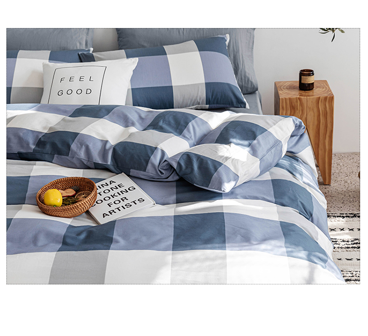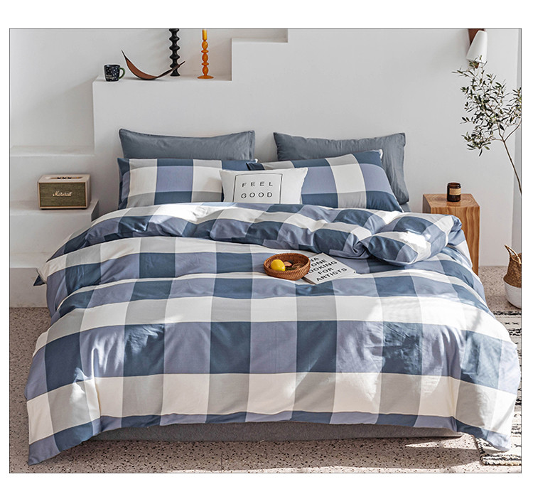 简宜 2020新款纯棉四件套 蓝大格
