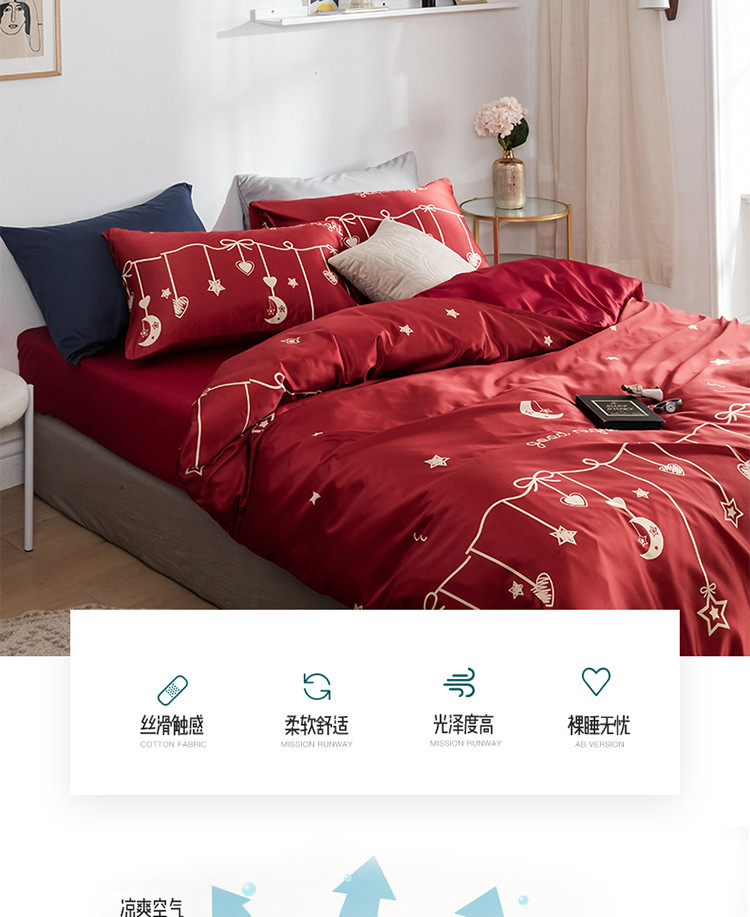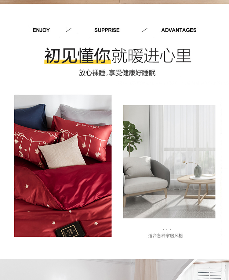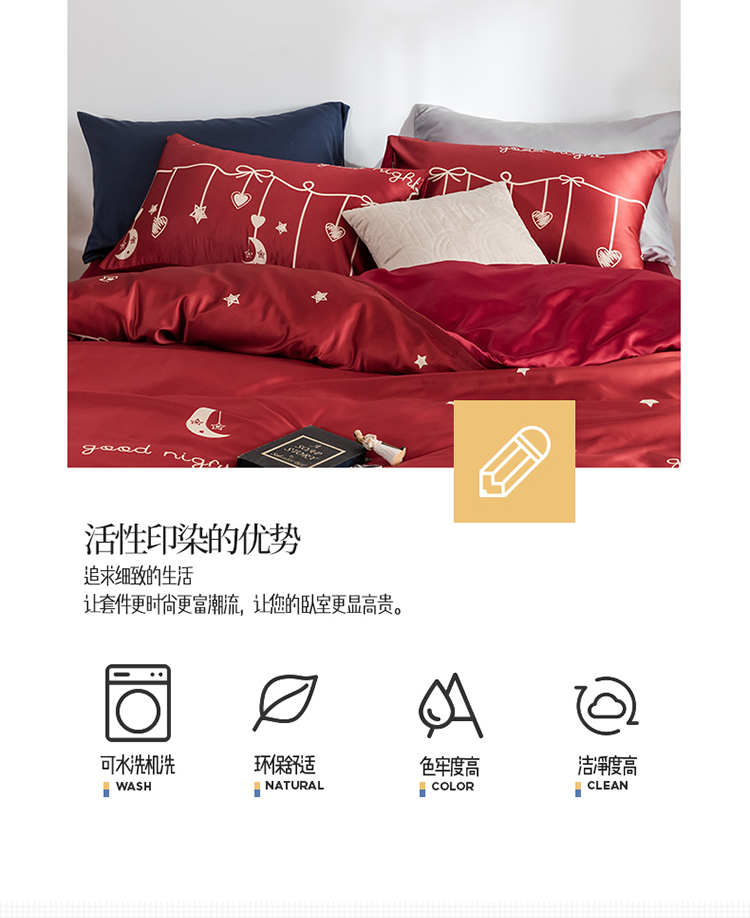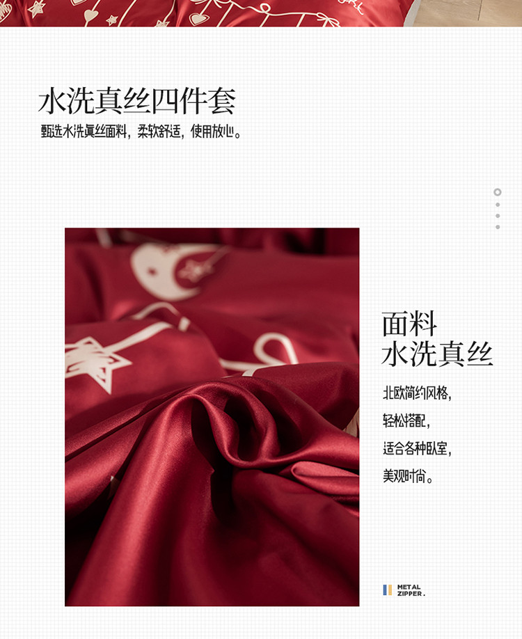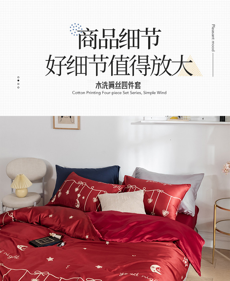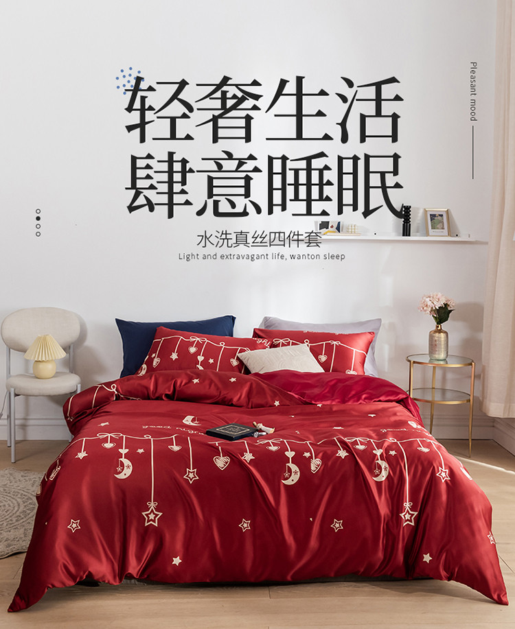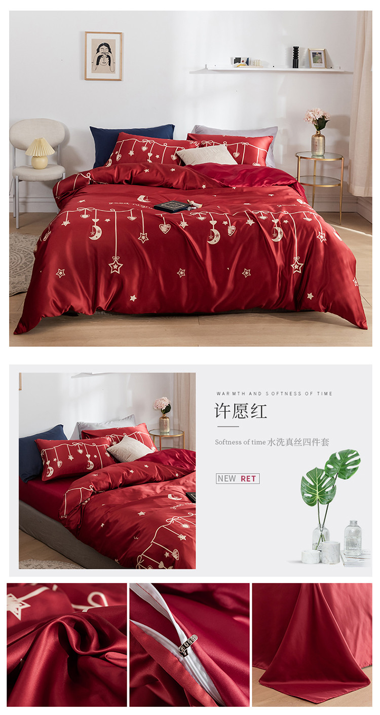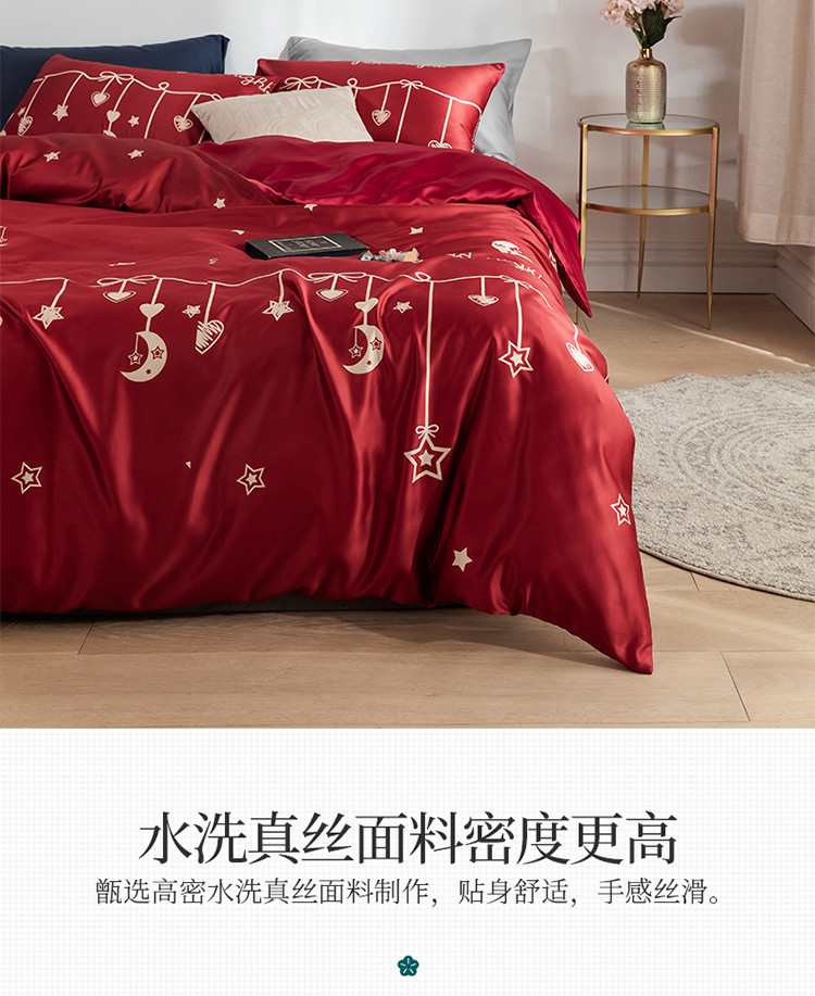 商品名称:琪格格 2020新款水洗真丝印花四件套 许愿-红